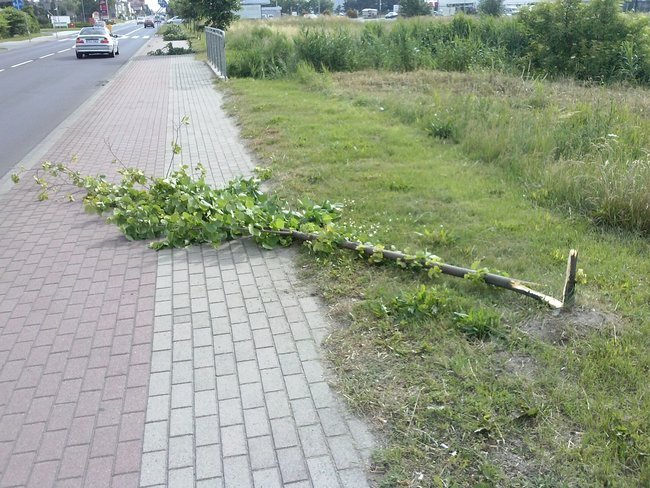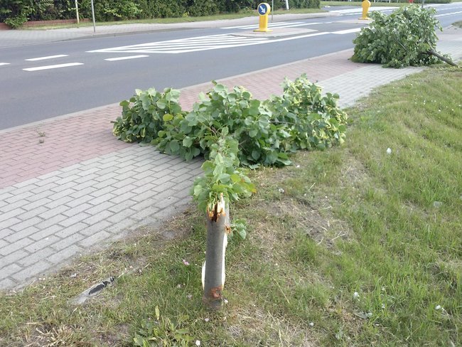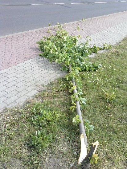 Połamano trzy lipy posadzone w tym miejscu 8 lat temu. Straty finansowe powstałe w wyniku zniszczeń oszacowano na 2,5 tys. złotych.