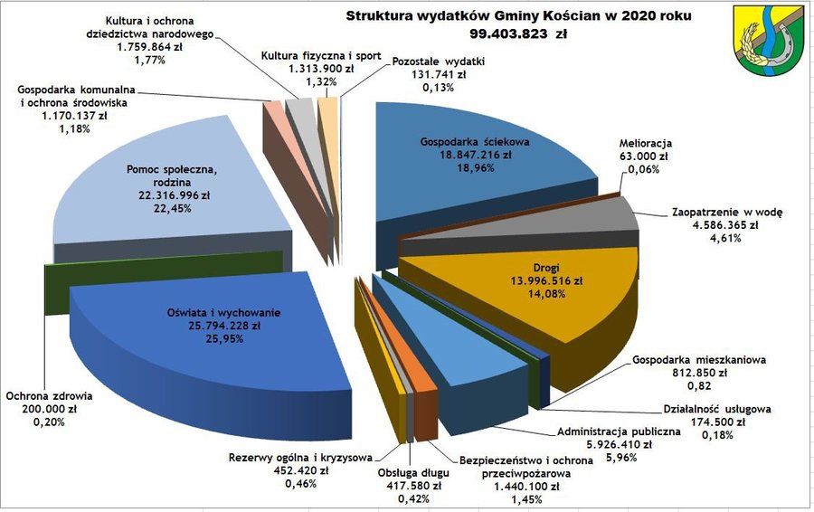 Jednogłośnie przyjęty przez Radę Gminy Kościan budżet zakłada dochody w wysokości 82.929.912 zł i wydatki w kwocie 99.403.823 zł. Deficyt w wysokości 16.473.911 zł zostanie sfinansowany przychodami z kredytów i pożyczek z WFOŚiGW w Poznaniu. Pozotywną opinię o budżecie i kondycji finansowej gminy wyraziła Regionalna Izba Obrachunkowa.