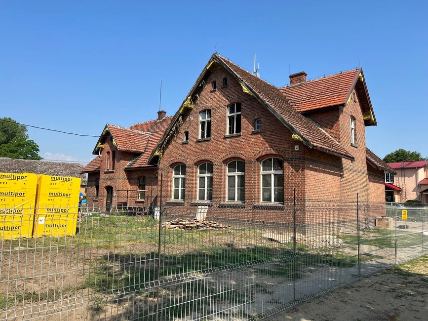 Trwa adaptacja zabytkowego budynku szkoły w Bieżyniu na Gminne Centrum Nauki. Koszt inwestycji oszacowano na ponad 4,5 miliona zł.