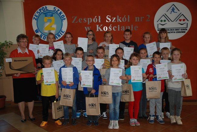 Obecni czwartoklasiści otrzymali Grand Prix za rok 2014/2015 i pierwszą nagrodę wśród kl. III. Projekt realizowali pod okiem wychowawczyni Doroty Zydlik. Podczas ubiegłotygodniowego apelu laureaci odebrali nagrody, a wśród nich skaner dla szkoły, laptop dla wychowawczyni oraz bidony, koszulki, odblaski i dyplomy dla uczniów.