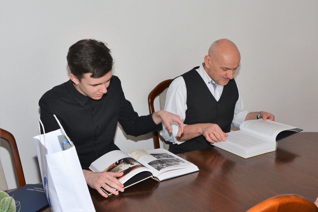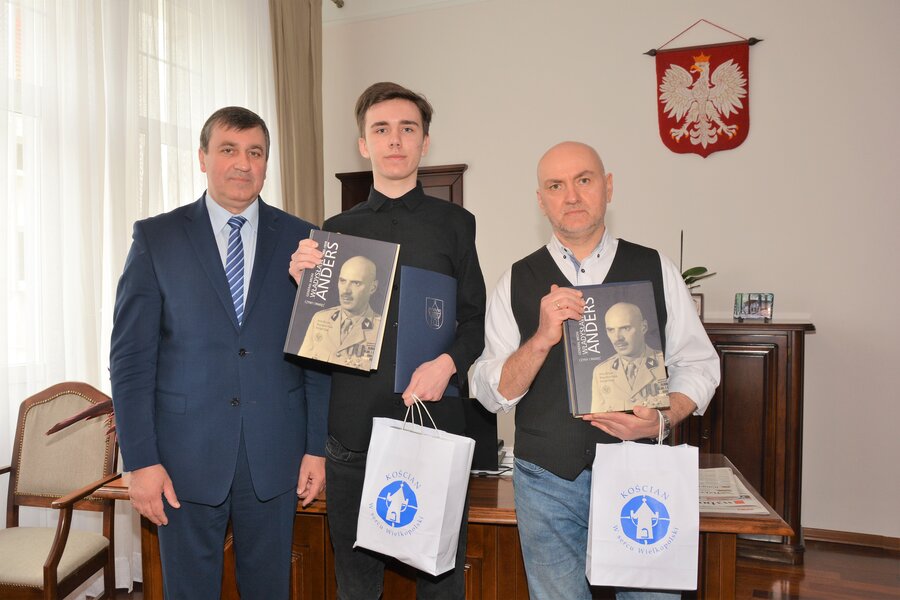 Piotr Ruszkiewicz pogratulował uczniowi sukcesu i podziękował nauczycielowi za rozbudzanie w podopiecznych zainteresowania historią. Obu gościom podarował albumy „Generał broni Władysław Anders 1892–1970. Czyny i pamięć”. To uznana za album minionego roku publikacja trzech profesorów: pochodzącego z Kościana Bogusława Polaka, jego syna Michała Polaka oraz Jerzego Kirszaka.