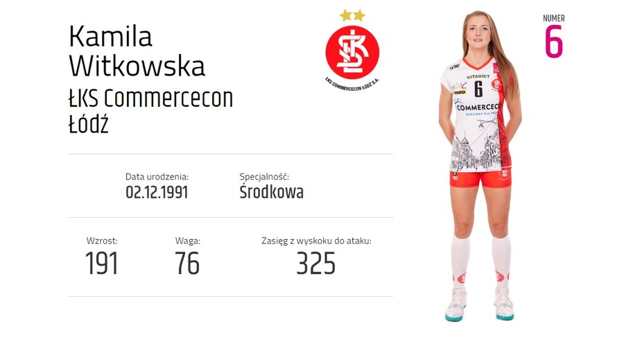 Kamila Witkowska to trzykrotna medalistka mistrzostw Polski, jedna z najbardziej skutecznych w ataku i świetnie blokująca zawodniczka Tauron Ligi. Obecnie występuje w barwach ŁKS Commercecon Łódź.
