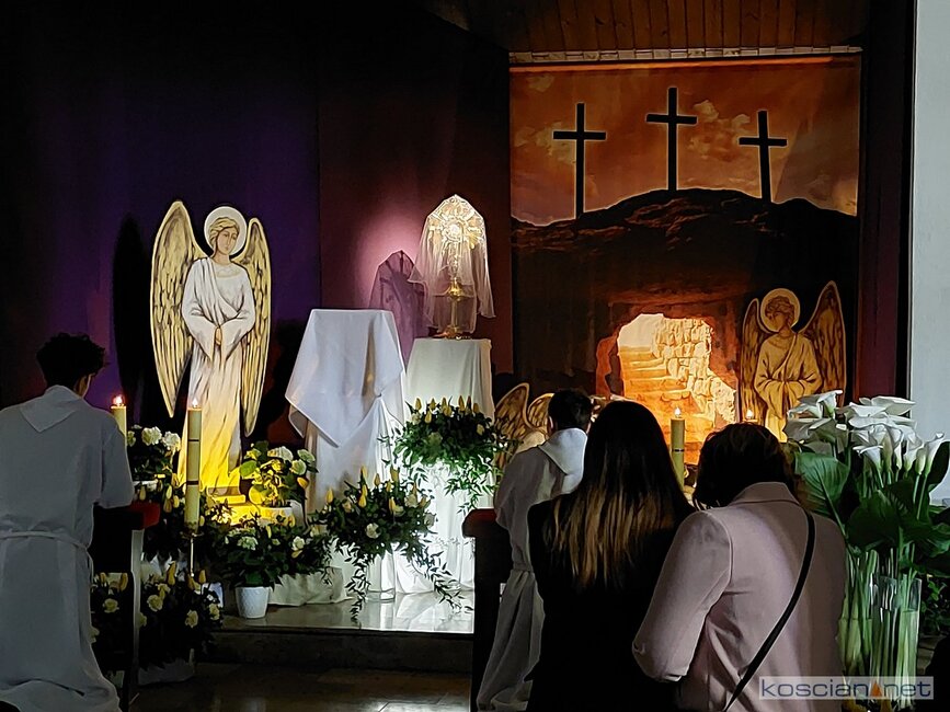 W Wielką Sobotę katolicy odwiedzają w świątyniach Grób Pański. Adoracja przy grobie trwa do rozpoczęcia Wigilii Paschalnej.