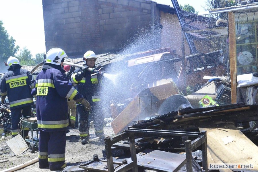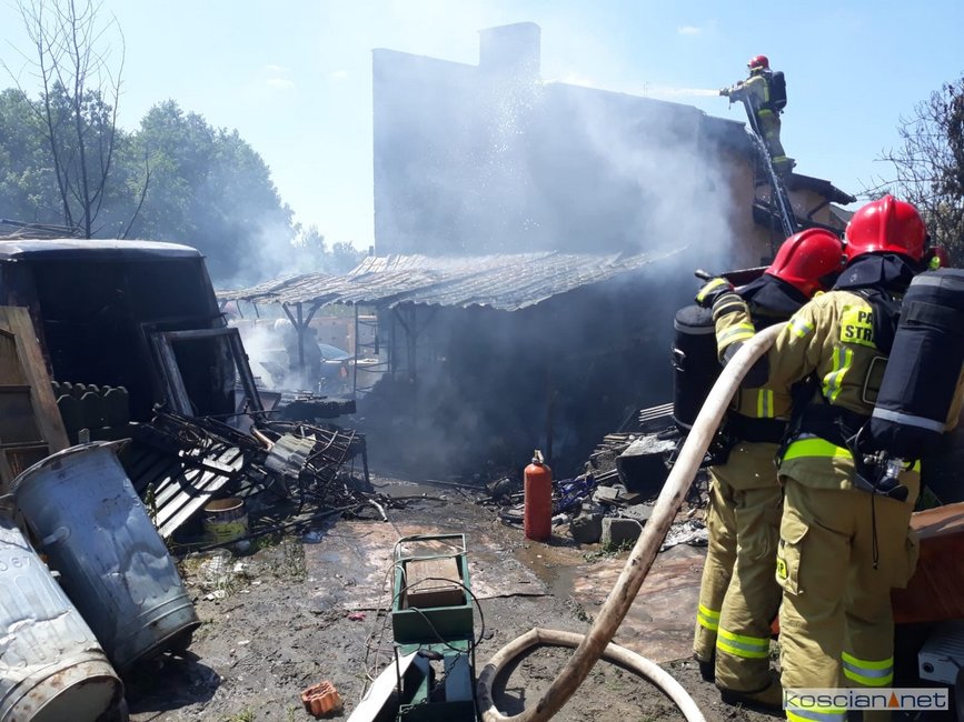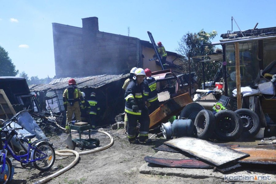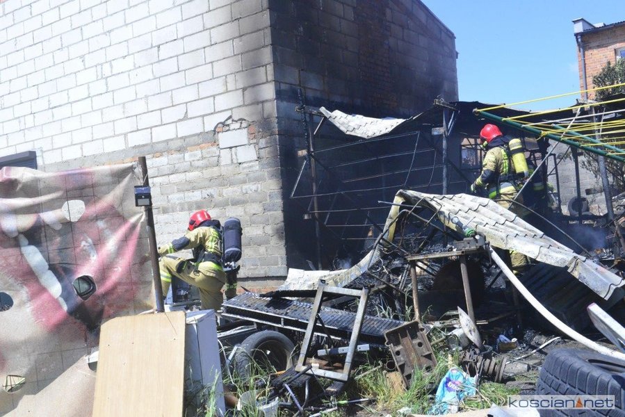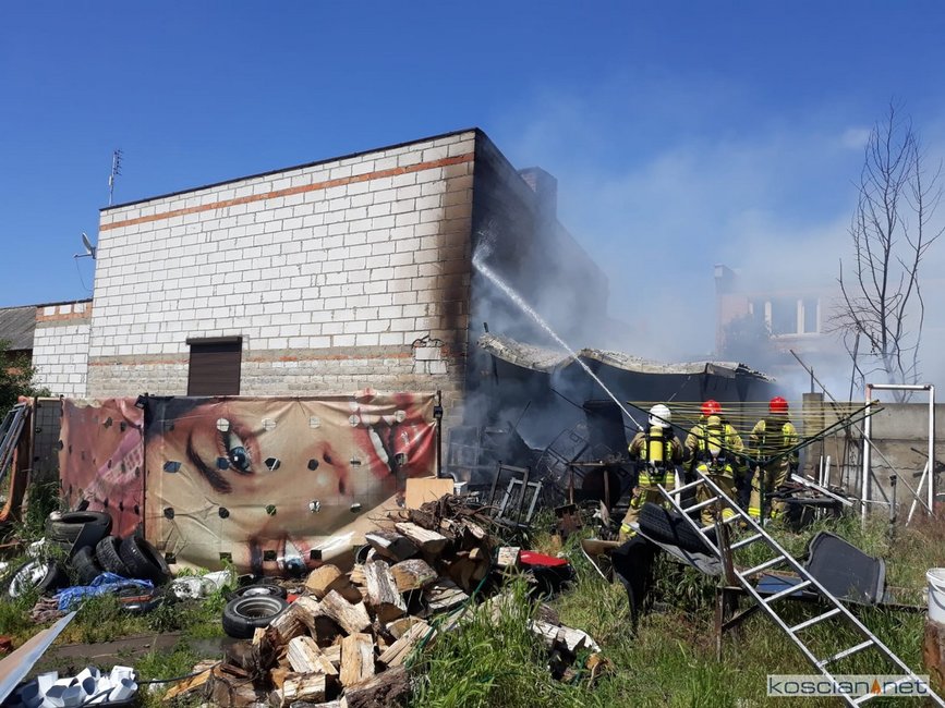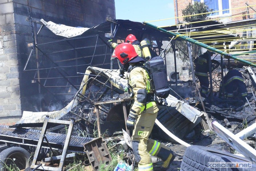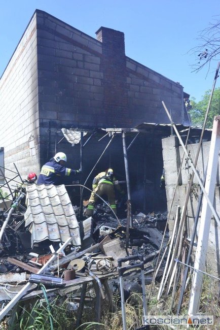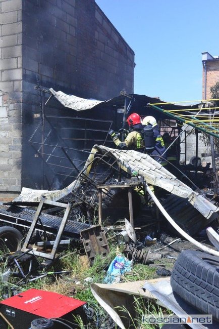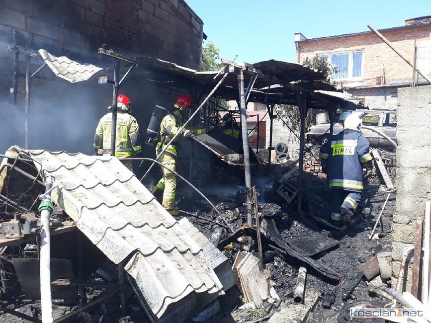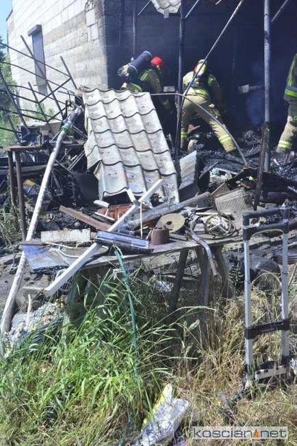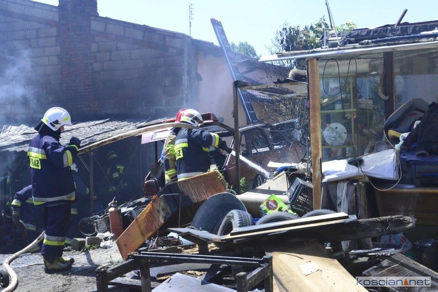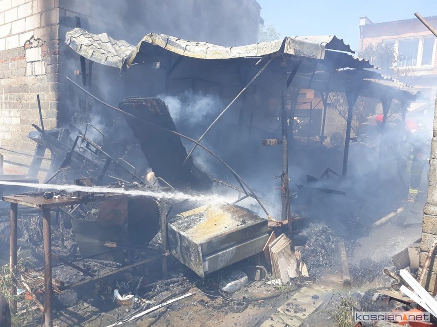 - Na miejscu okazało się, że pali się wiata warsztatowa na podwórku jednej z posesji - informuje mł. asp. Dawid Kryś, oficer prasowy Komendy Powiatowej PSP w Kościanie. - Pierwsze działania strażaków koncertowały się na niedopuszczeniu do rozprzestrzenienia się pożaru na budynek mieszkalny, do którego przylegała wiata.