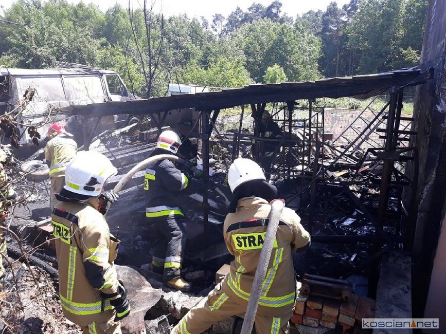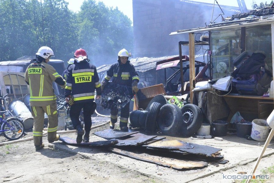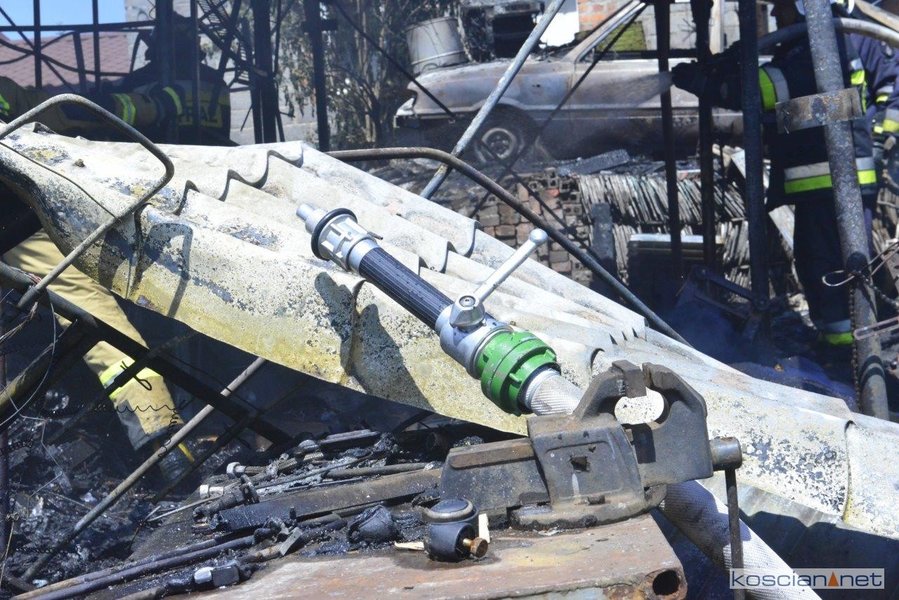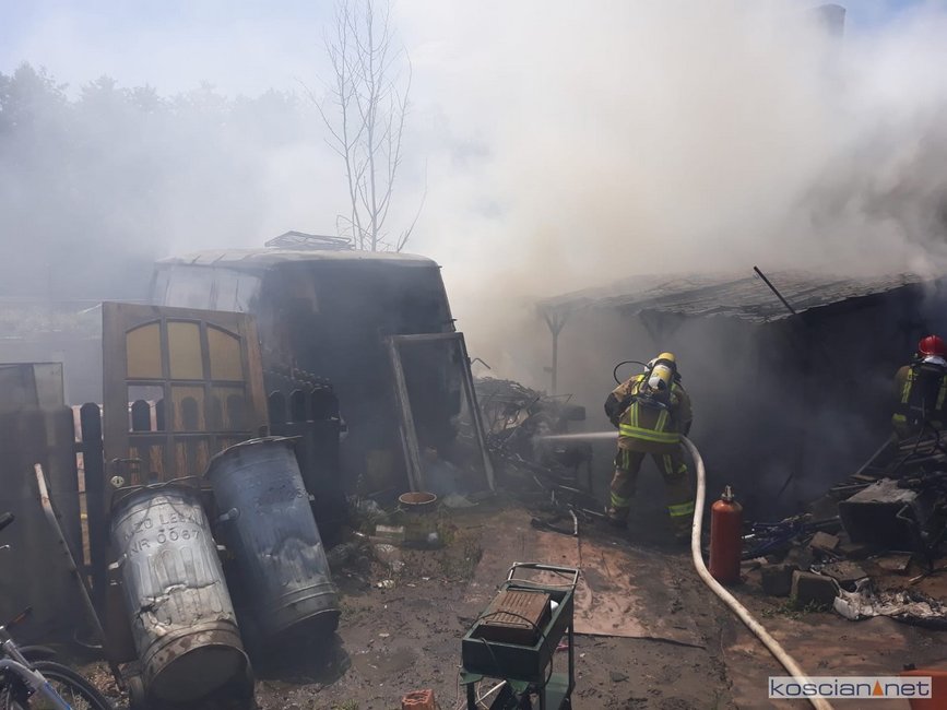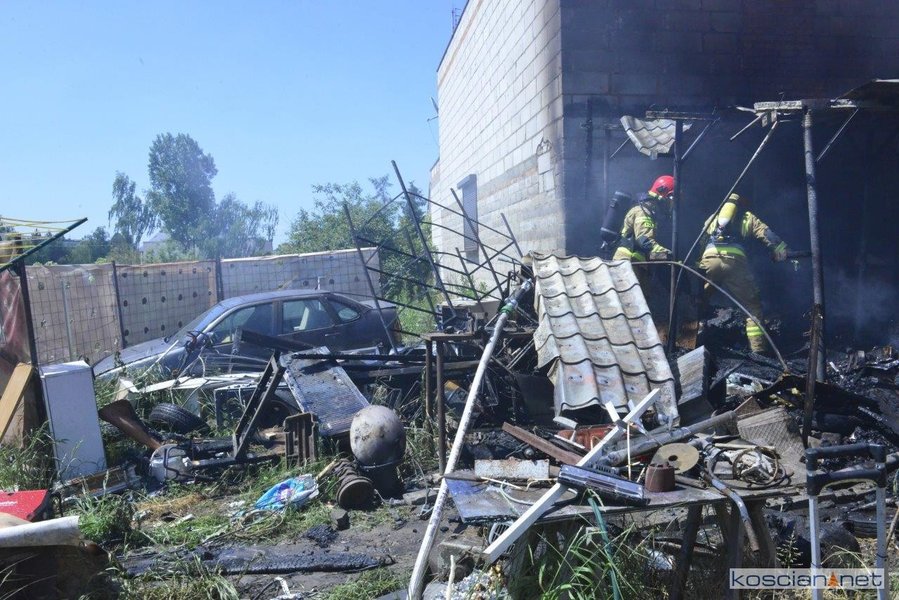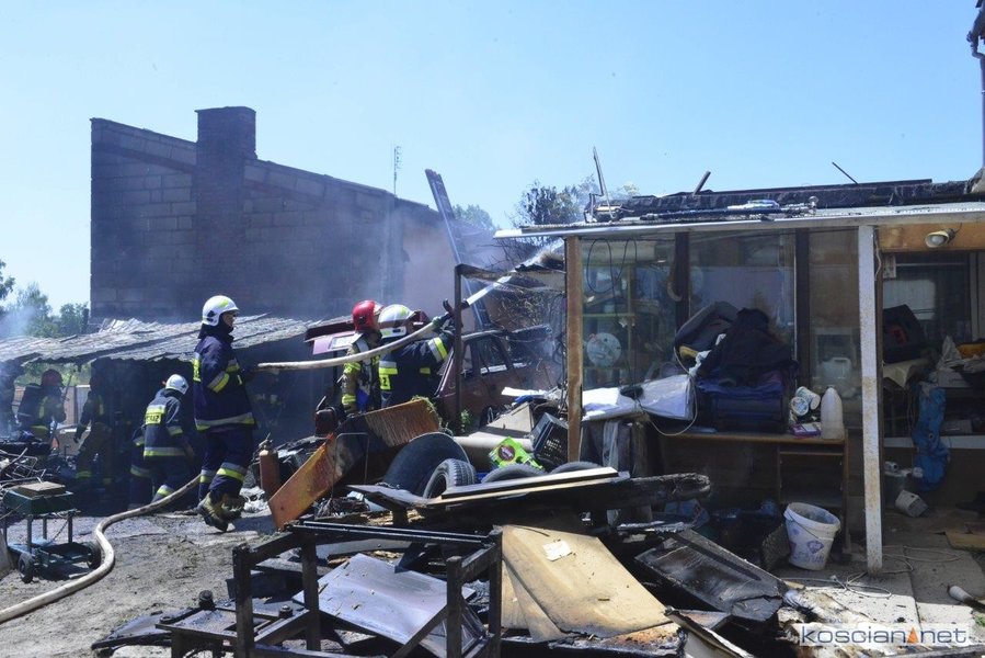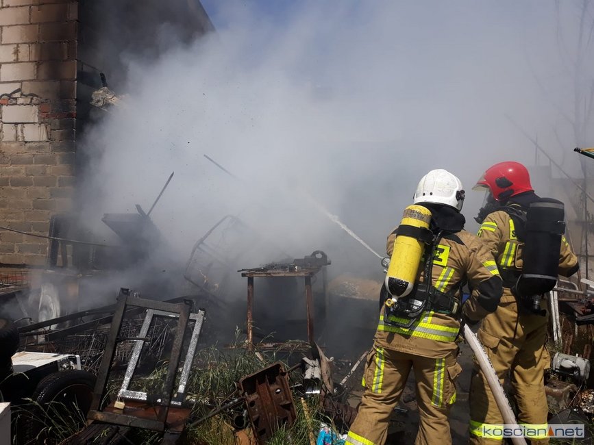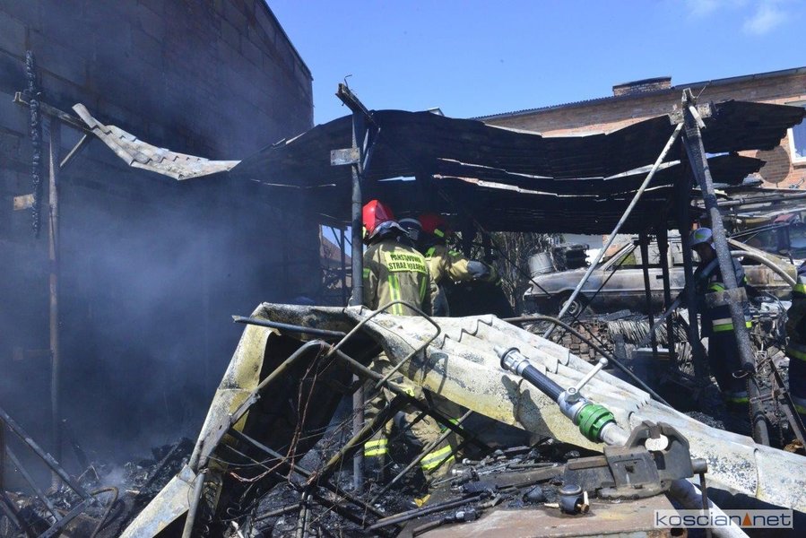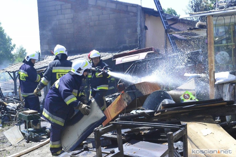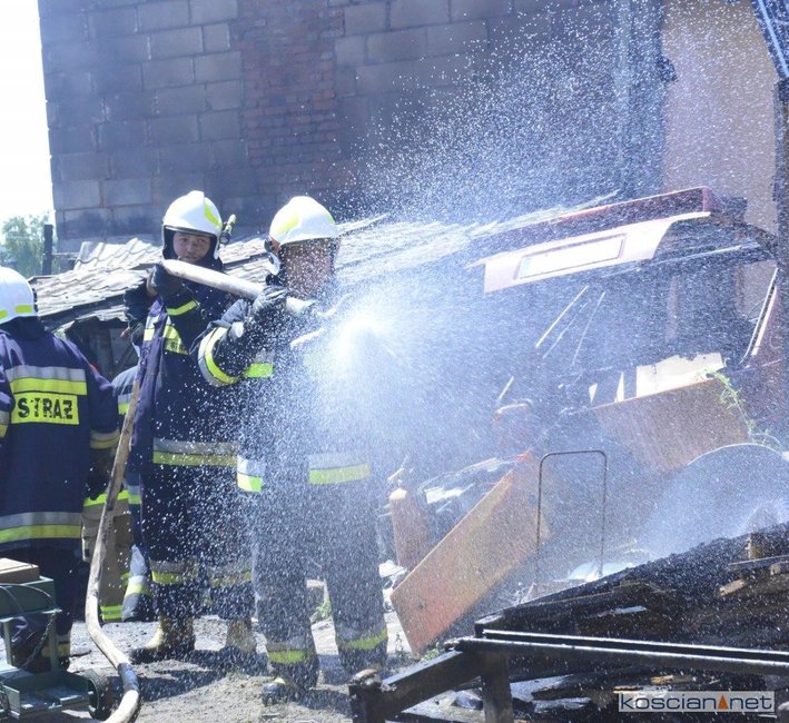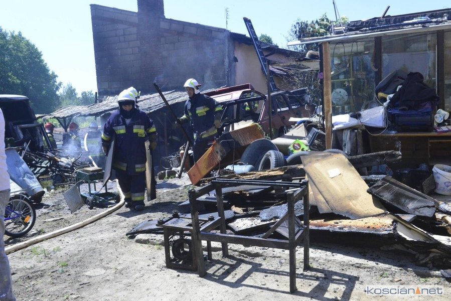 - Na miejscu okazało się, że pali się wiata warsztatowa na podwórku jednej z posesji - informuje mł. asp. Dawid Kryś, oficer prasowy Komendy Powiatowej PSP w Kościanie. - Pierwsze działania strażaków koncertowały się na niedopuszczeniu do rozprzestrzenienia się pożaru na budynek mieszkalny, do którego przylegała wiata.