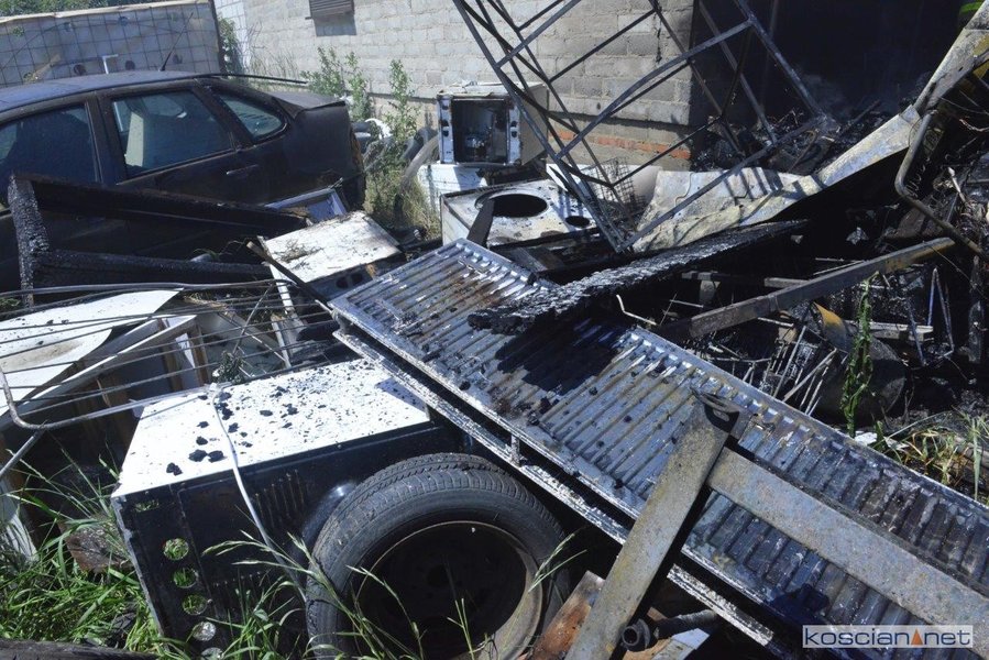 Budynek ocalono. Całkowicie spaliła się wiata i znajdujące się pod nią urządzenia i magazynowane sprzęty. Ogień strawił także znajdujące się na posesji dwa samochody.