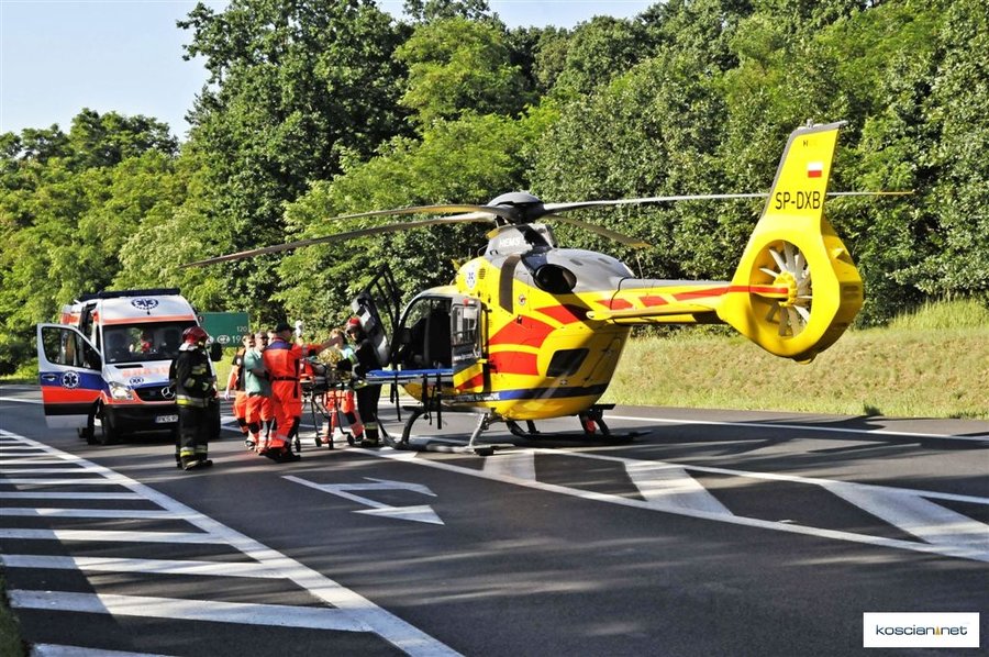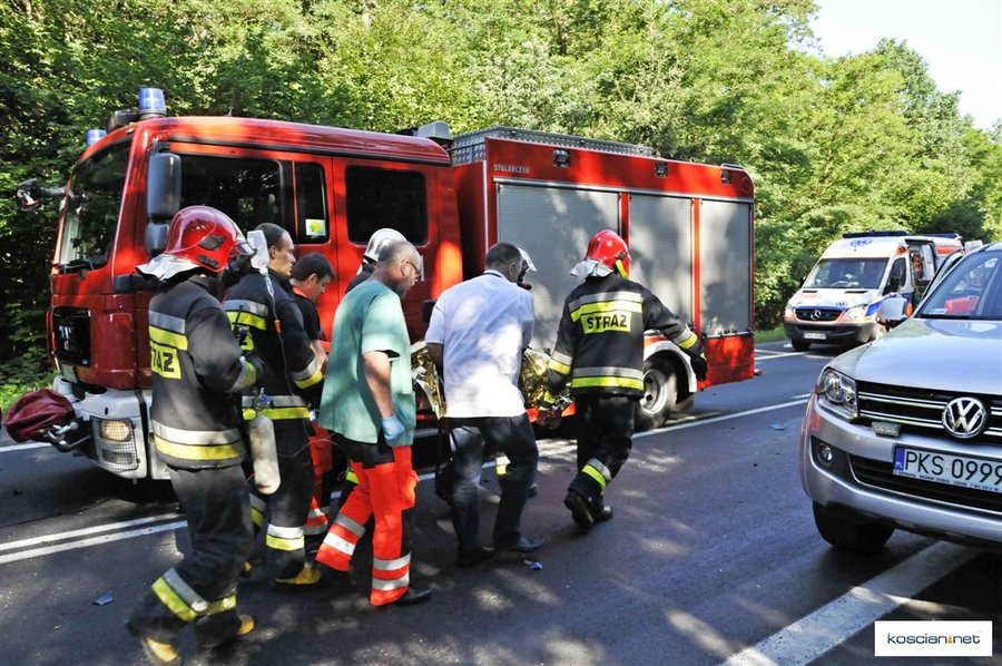 Po zderzeniu pasażerka peugeota sama opuściła pojazd, a zakleszczonego w pojeździe kierowcę uwolnili strażacy przy użyciu ciężkiego sprzętu hydraulicznego. Rannego kierowcę zabrał do Poznania śmigłowiec Lotniczego Pogotowia Ratunkowego.
