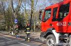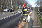 Kościańscy strażacy neutralizowali rozlany na drodze olej, który wyciekał z autobusu.