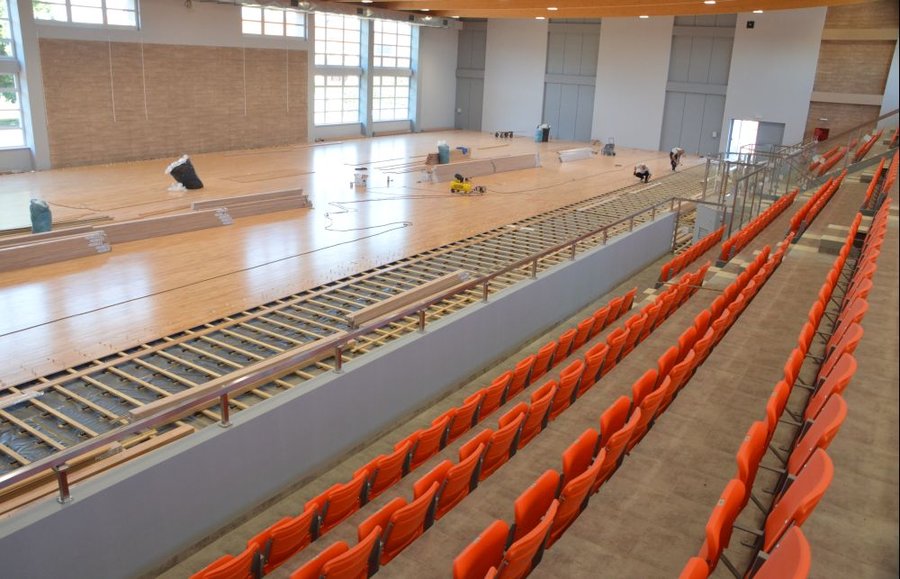 Na widowni hali zamontowano już siedziska. Łącznie 465 składanych krzeseł montowanych szeregowo na konstrukcji stojącej na zasadzie tzw. wspólnej nogi przykręcanej do podłoża. Koszt tych robót nie przekroczył 91 tys. zł.