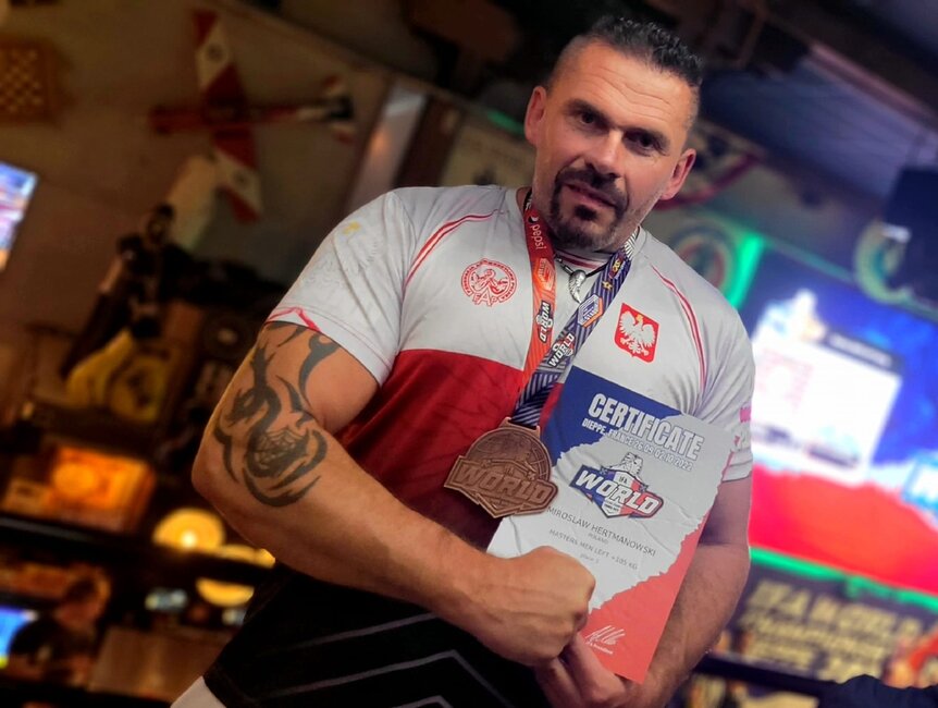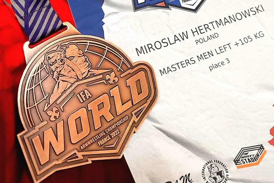 Tegoroczny wicemistrz Europy w armwrestlingu (siłowanie na ręce) zdobył brązowy medal na Mistrzostwach Świata rozegranych we Francji.