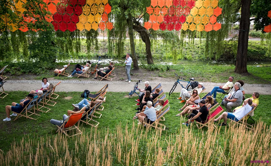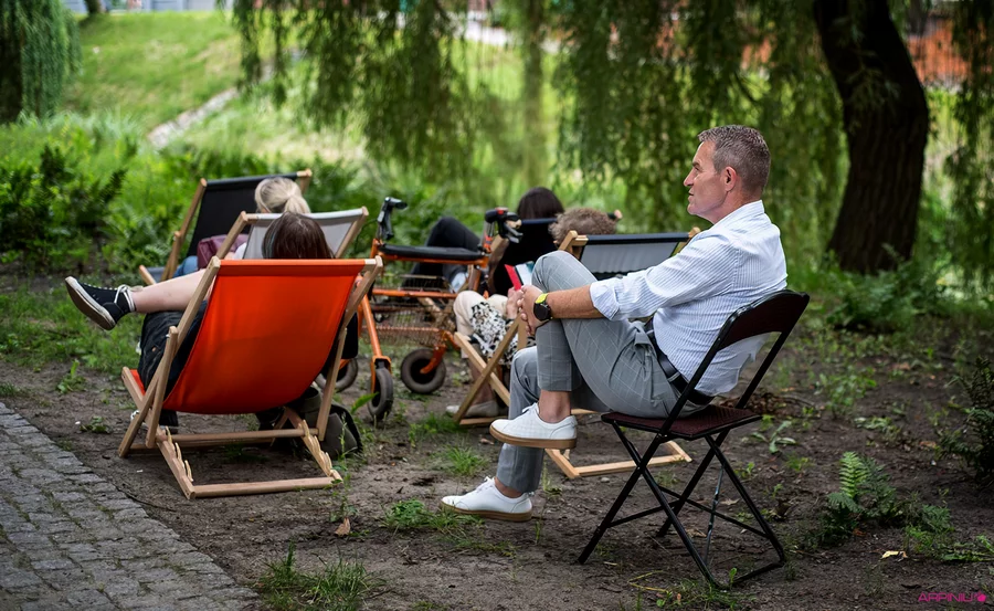 Spotkanie odbyło się w piątek, 8 sierpnia, na Wałach Żegockiego, w „sali koncertowej” pod dorodnymi drzewami i kolorową instalacją wykonaną z włóczki przez panie z grupy „Dzierganie w Kościanie”. W roli gospodarza wystąpił Paweł Sałacki, dyrektor biblioteki, który odtworzył audycję o początkach zespołu Lady Pank oraz debiutancki album grupy.