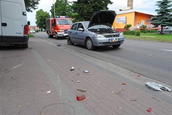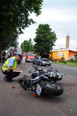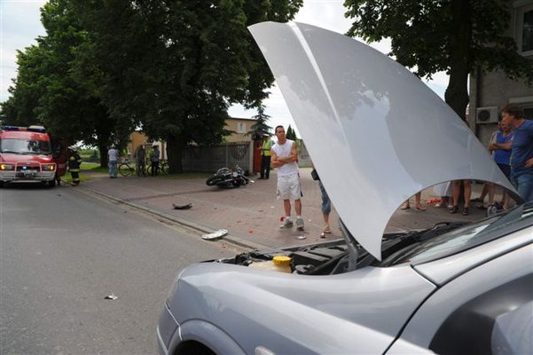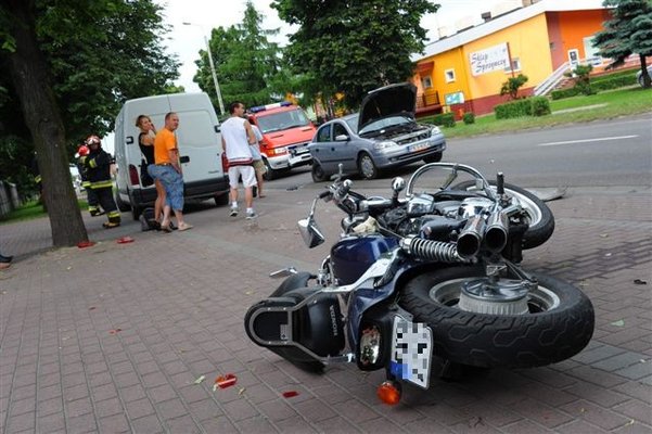 Dziś, tuż po godzinie dwunastej, w Racocie na zatrzymującego się opla astrę wjechał motocyklista jadący hondą magna. Motocykl zawadził również parkujące obok dostawcze renault. Motocyklistę odwieziono do szpitala.