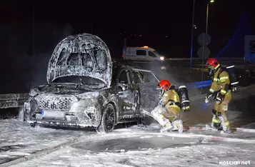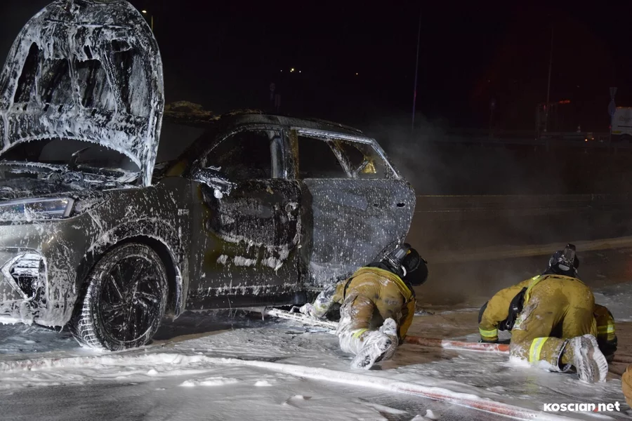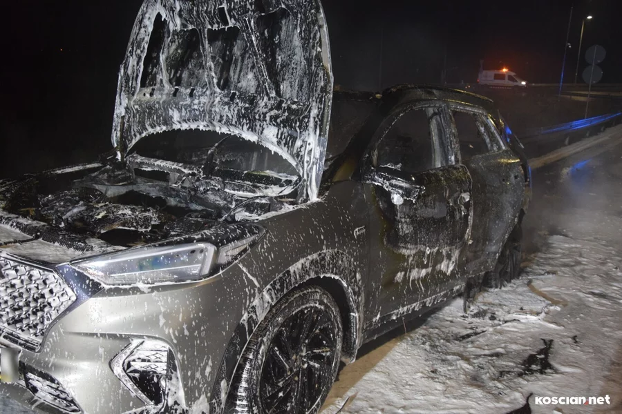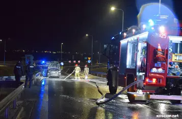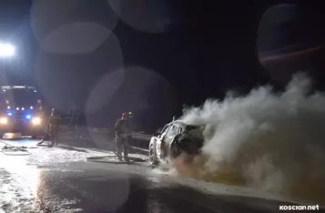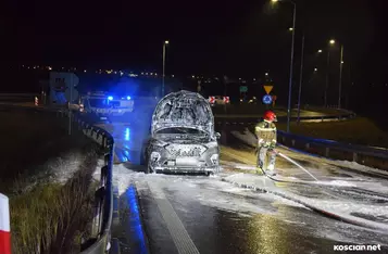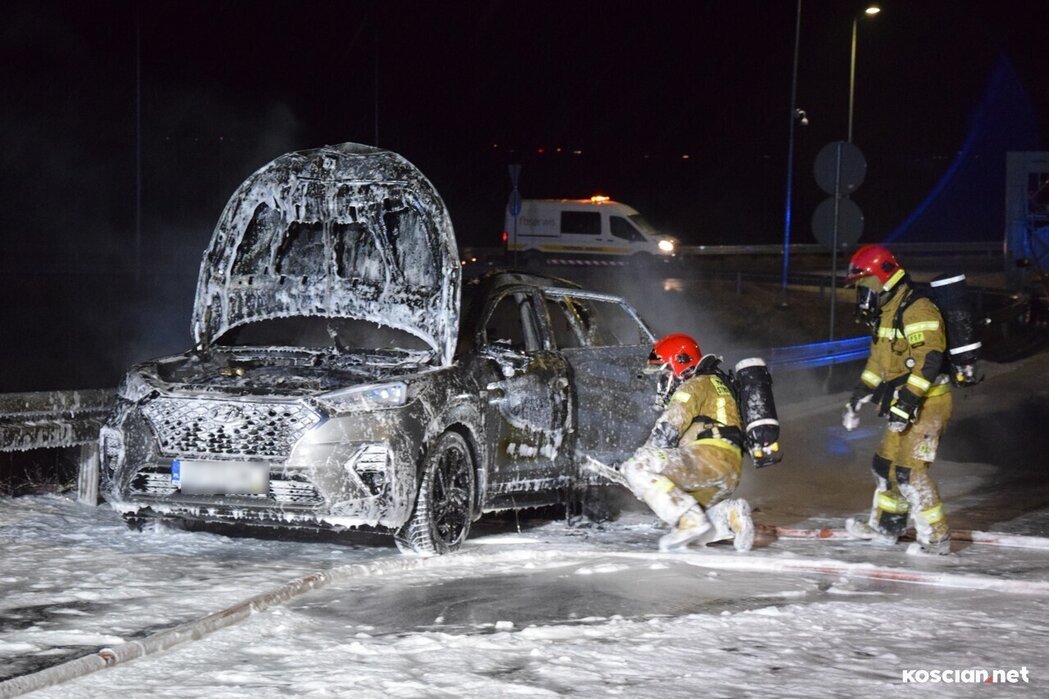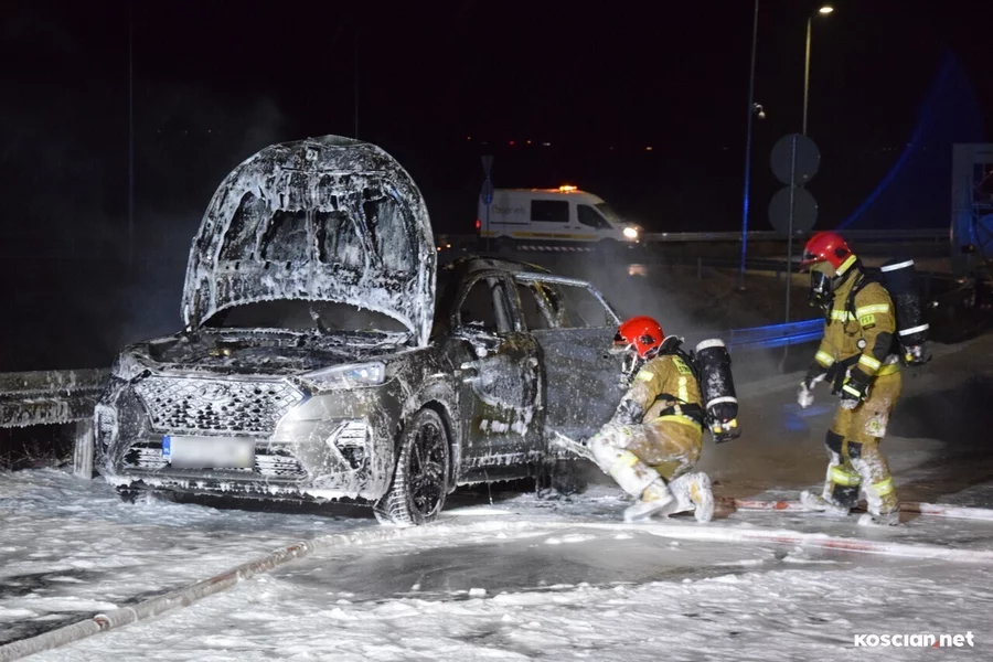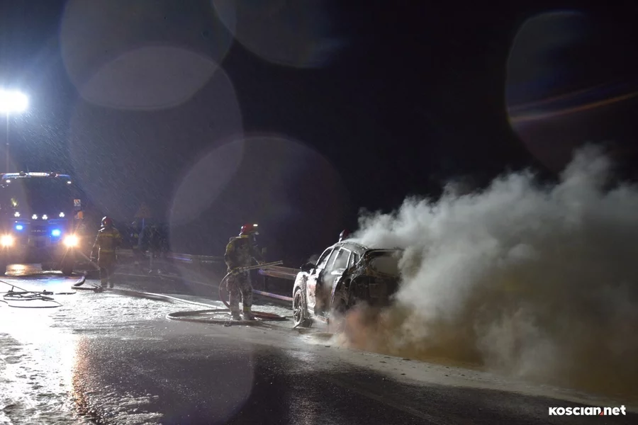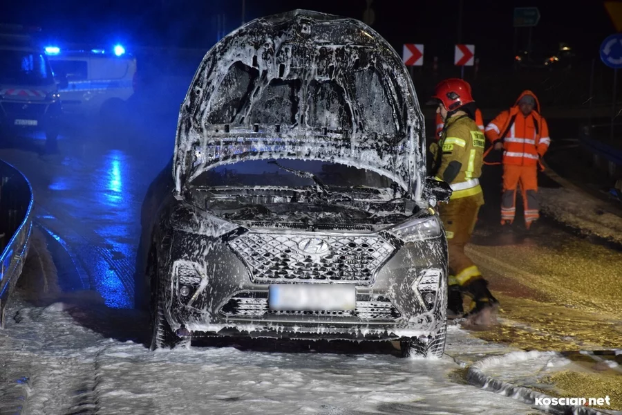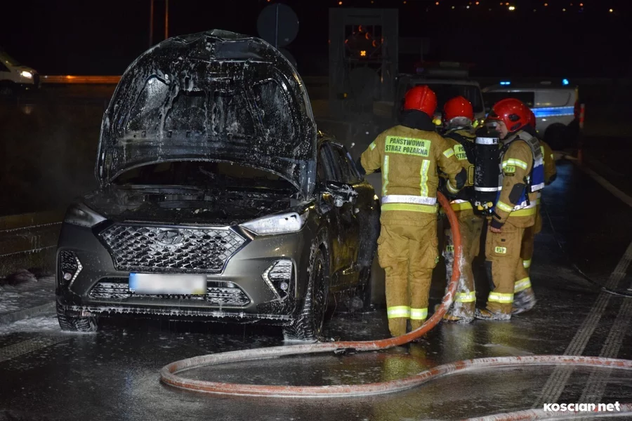 Do zdarzenia doszło we wtorek, 19 grudnia, około godziny 22:20, na wiadukcie węzła Kościan Północ. Pożar hyundaia, którym kierował 38-letni mieszkaniec powiatu kościańskiego, gasili strażacy z PSP Kościan i OSP Bonikowo.