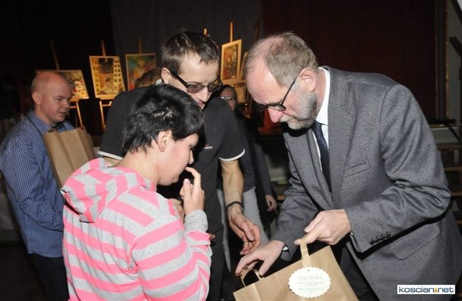 Zanim wręczono nagrody w konkursie plastycznym podopieczni Warsztatów Terapii Zajęciowej w Kościanie, działających przy Stowarzyszeniu Pomocy Dzieciom i Młodzieży Niepełnosprawnej ,,Światło Nadziei’’ w Śmiglu wystąpili w spektaklu ,,Salto – próba lotu’’.
