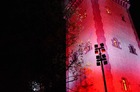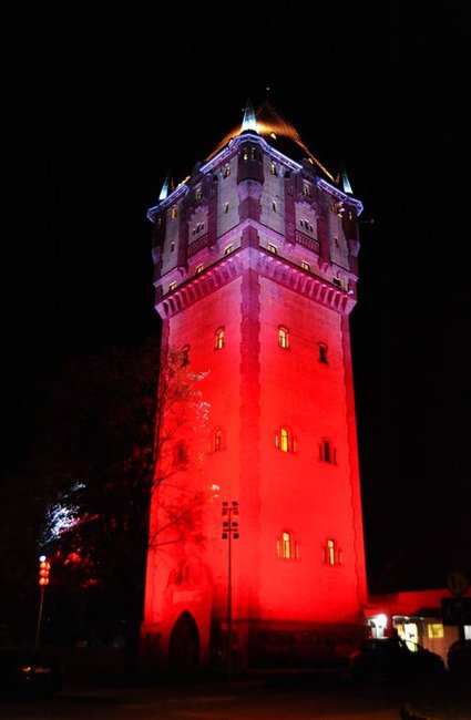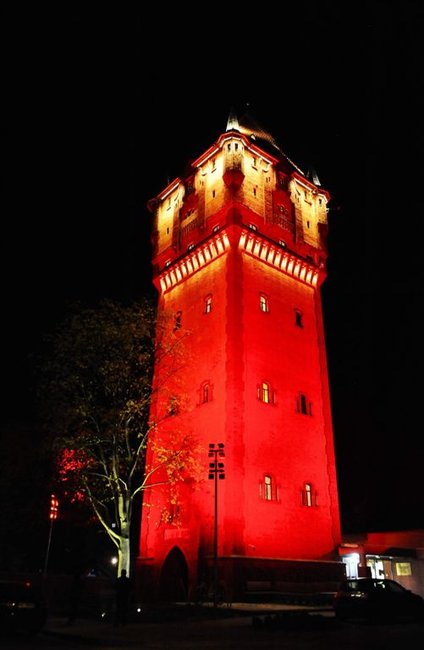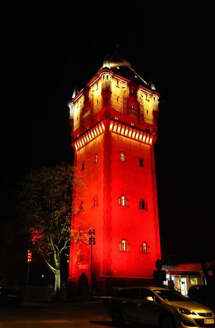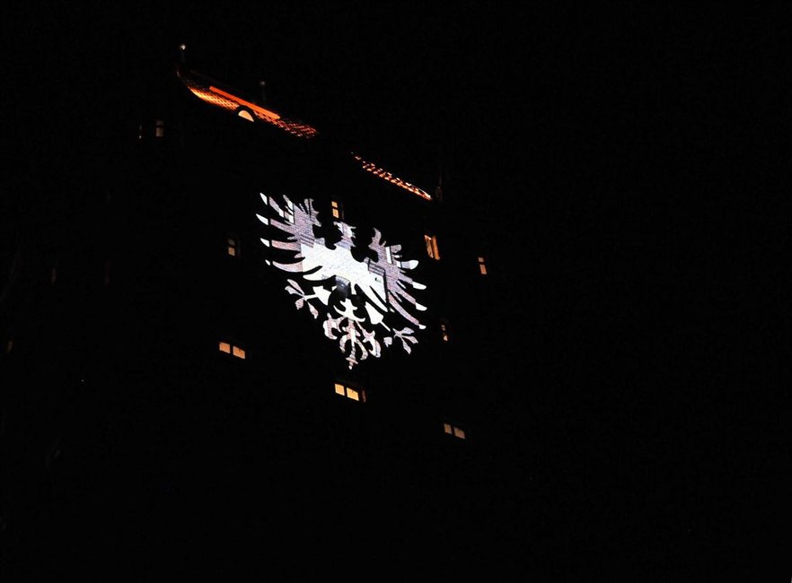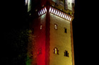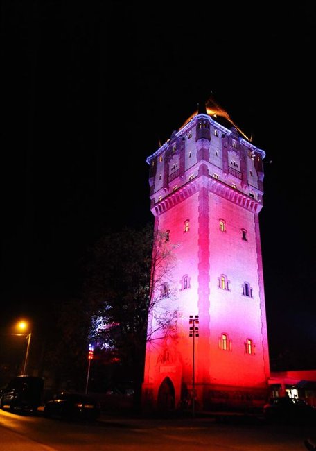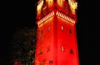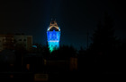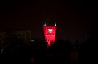 Wokół wieży zamontowano reflektory z filtrami Gobo umożliwiającymi dowolne zmiany kolorów z możliwością wyświetlania przygotowanego wcześniej wzoru graficznego.