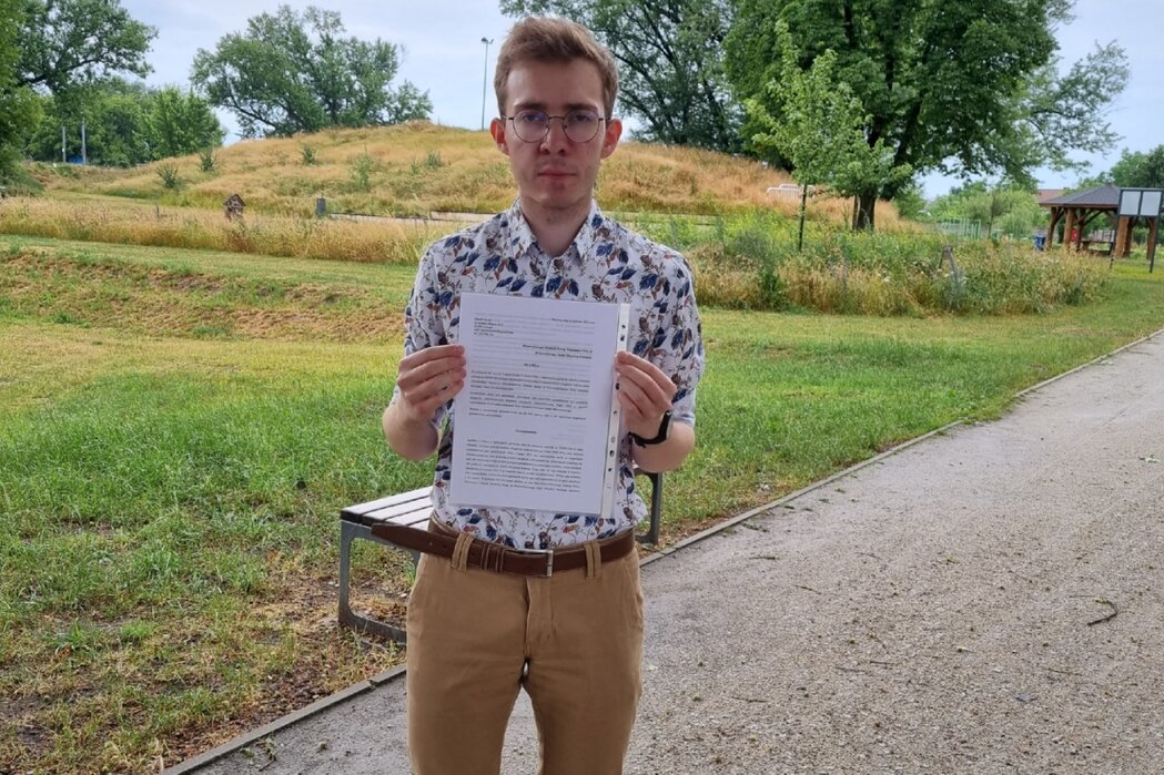 Na zdjęciu Dawid Murek ze skargą na Przewodniczącego Rady Miejskiej Kościana