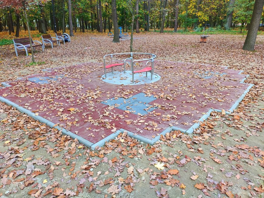 Plac zabaw w kościańskim parku rozbudowano o urządzenia rekreacyjne dla dzieci poruszających się na wózkach inwalidzkich.