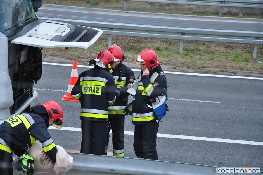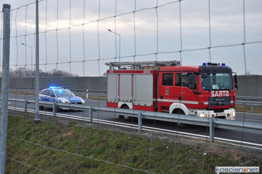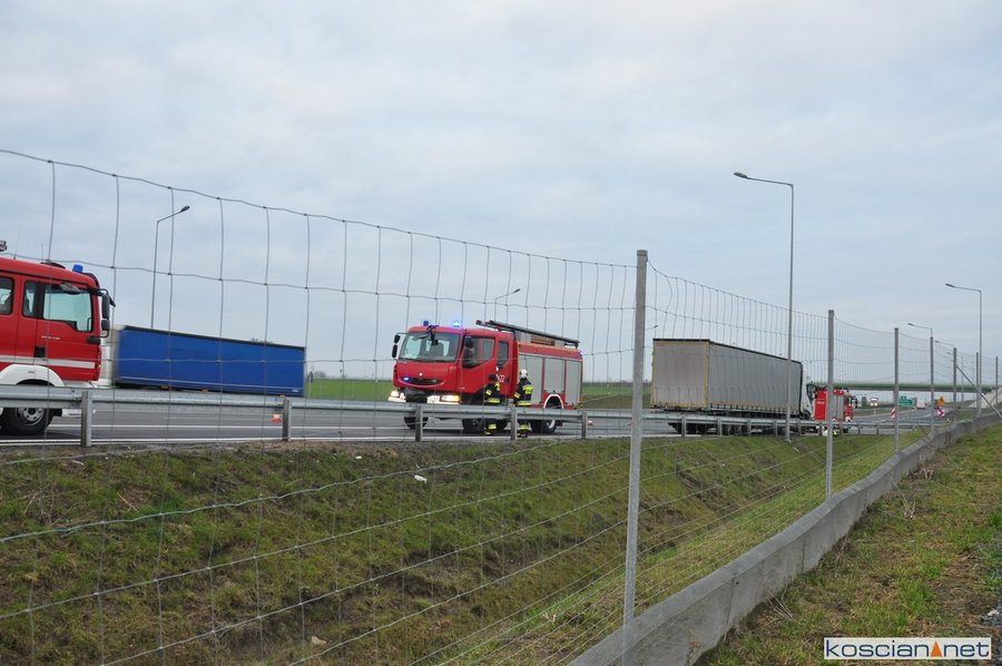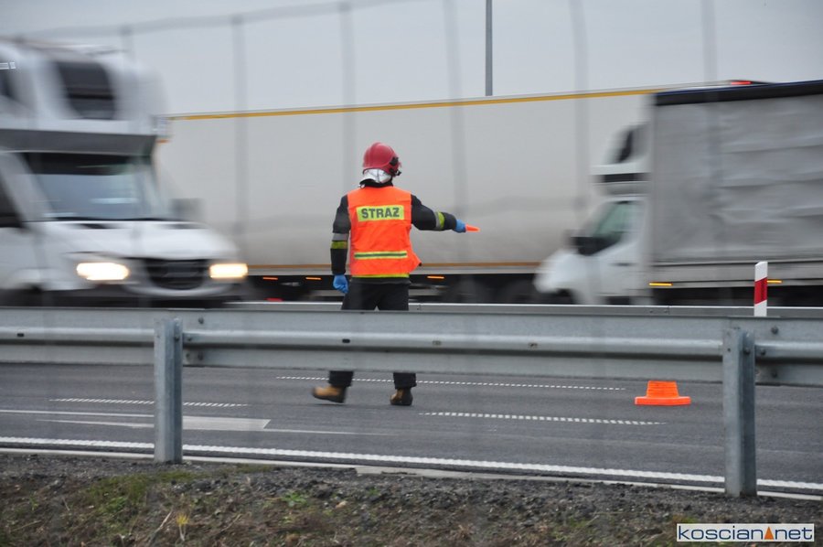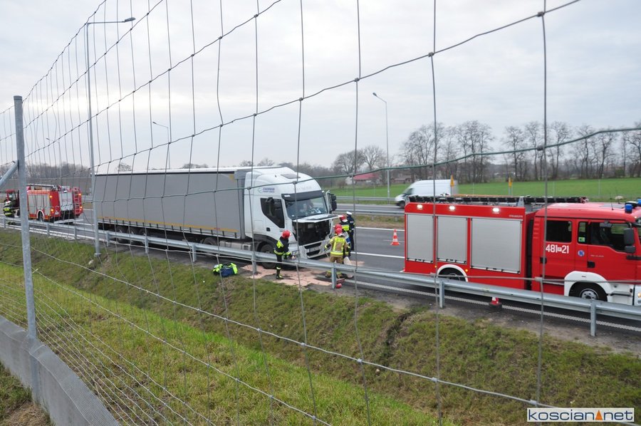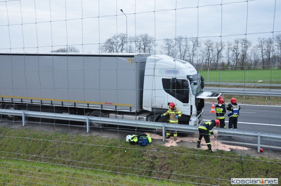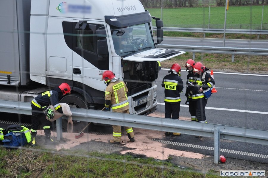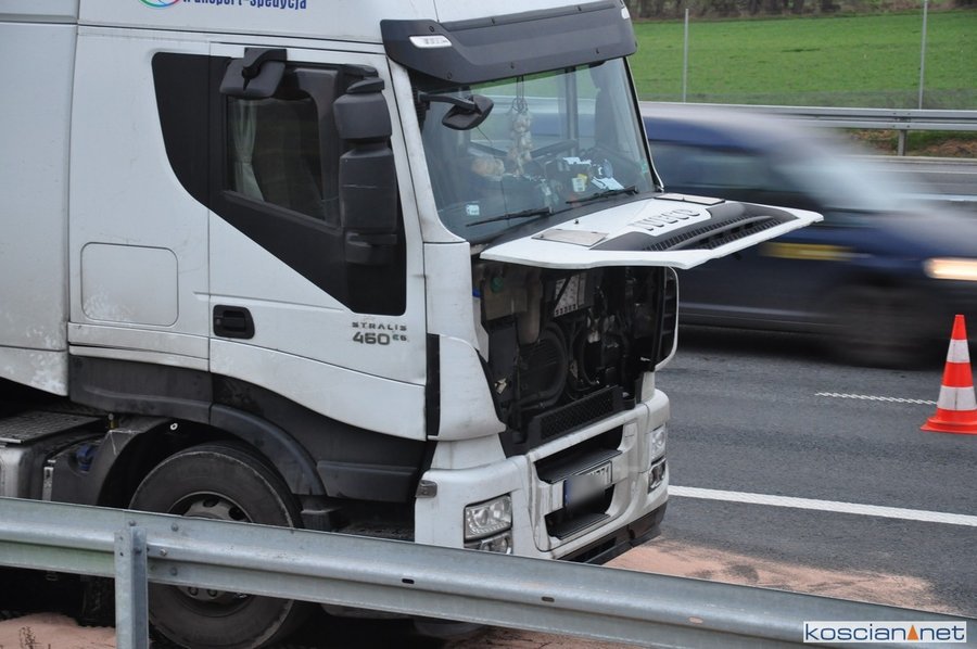 Do zdarzenia doszło we wtorek, 1 grudnia, około godziny 14.50, na drodze S5 w okolicy węzła Kościan Południe. Straż pożarna otrzymała zgłoszenie o palącej się ciężarówce. Na miejsce wysłano strażaków z PSP Kościan, OSP Czacz i OSP Śmigiel. Przed przybyciem strażaków kierowca opanował sytuację przy pomocy gaśnicy. Przyczyną dymu, który wydobywał się spod maski był wyciek oleju.
