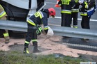 Podczas działań strażaków, którzy zneutralizowali rozlany olej, ruch odbywał się jednym pasem.
