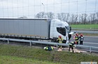 Strażacy otrzymali zgłoszenie o palącej się ciężarówce przy węźle Kościan Południe.