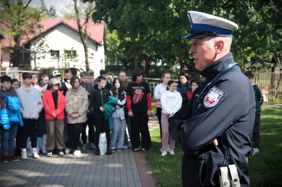 Korzystając z okazji, Policjant Wydziały Ruchu Drogowego przypomniał uczniom podstawowe zasady bezpieczeństwa poruszania się po drodze. Omówił zasady poruszania się na hulajnogach, również elektrycznych. Przestawił także aspekty prawne dotyczące odpowiedzialności karnej za naruszanie i łamanie przepisów drogowych oraz odpowiedział na liczne pytania, których nie brakowało.