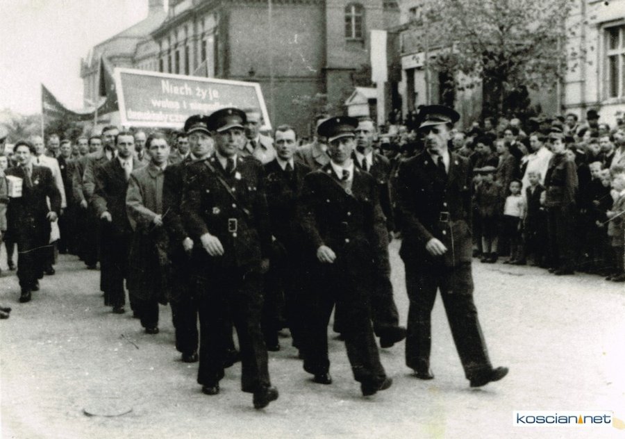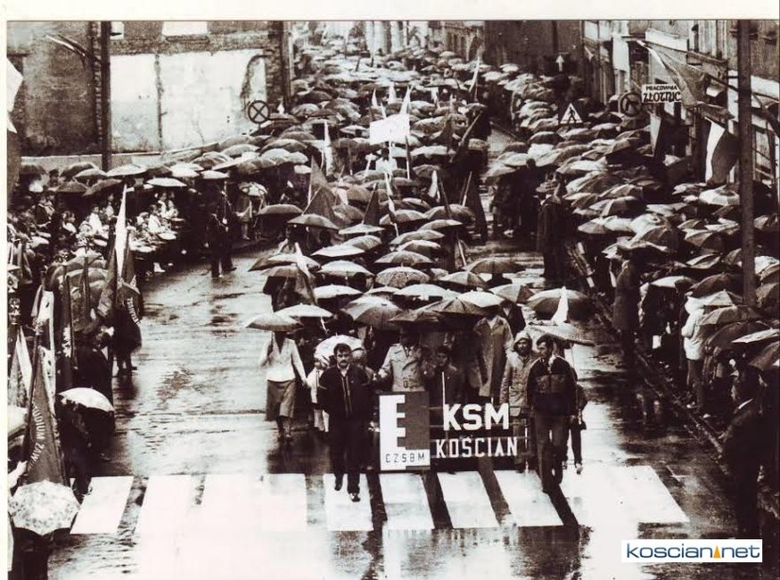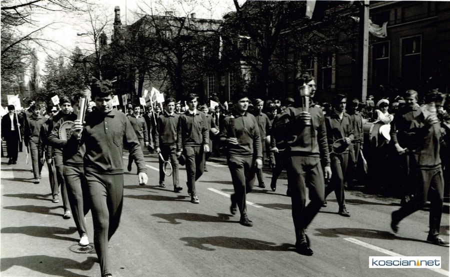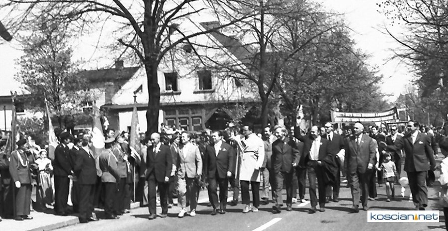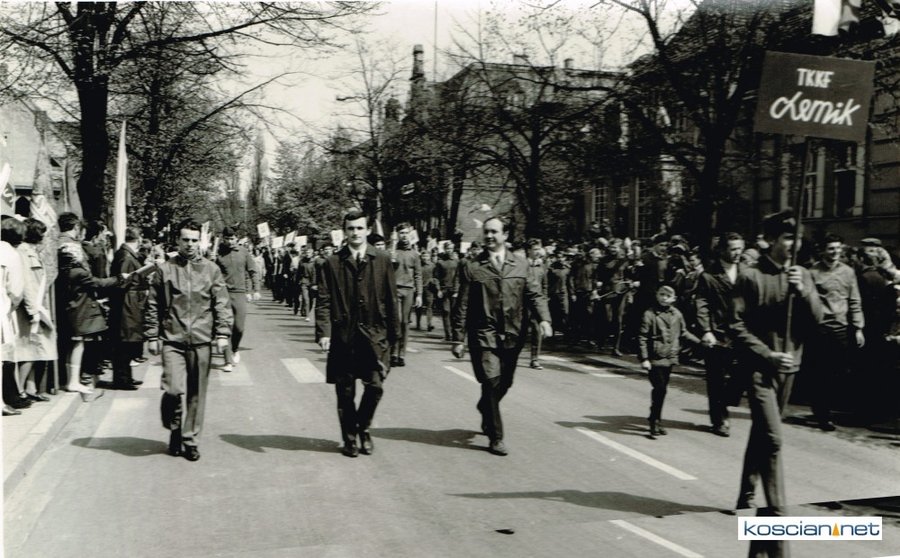 Archiwalnego filmu z Kościana nie mamy, więc dodajemy zapis pochodu pierwszomajowego w Lesznie sprzed pół wieku.