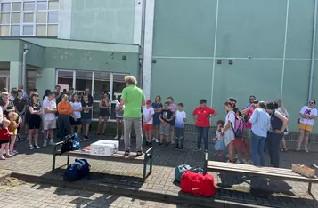35-osobowa grupa kibiców w barwach SKS Jantar Racot wjechała na III Igrzyska Europejskie.