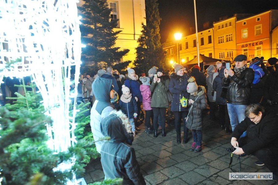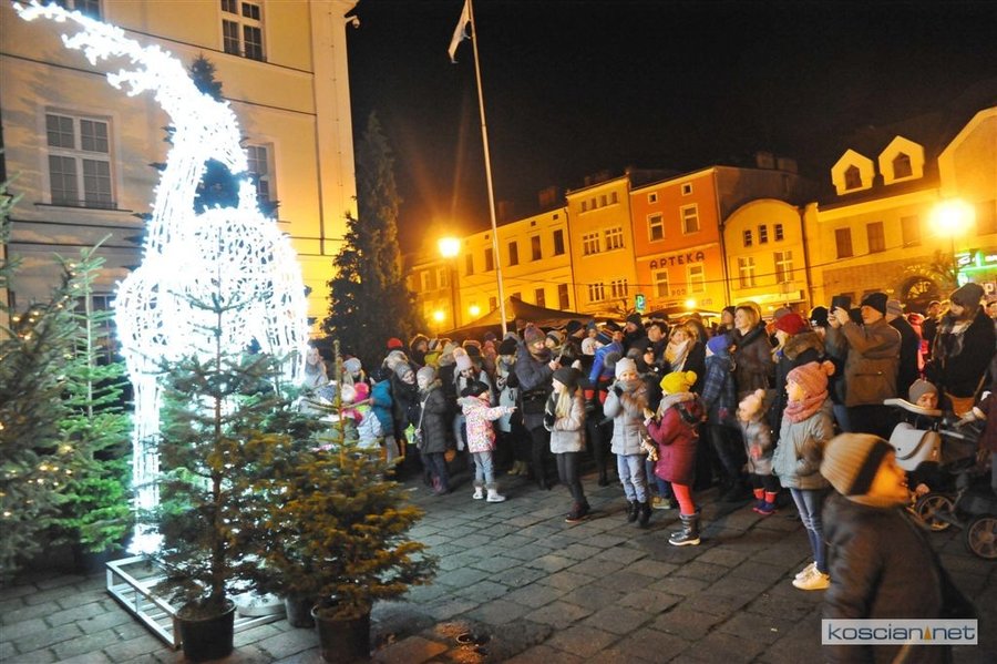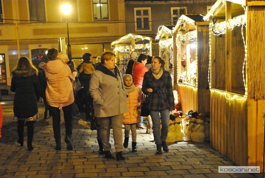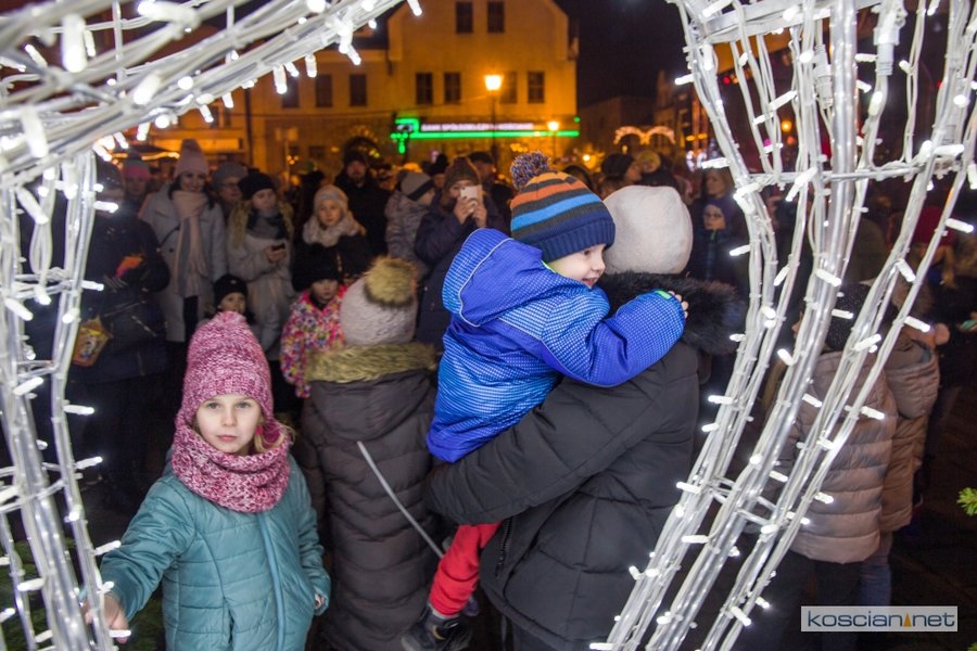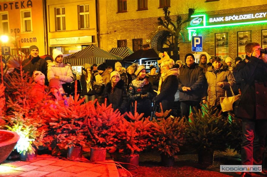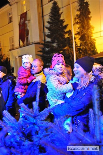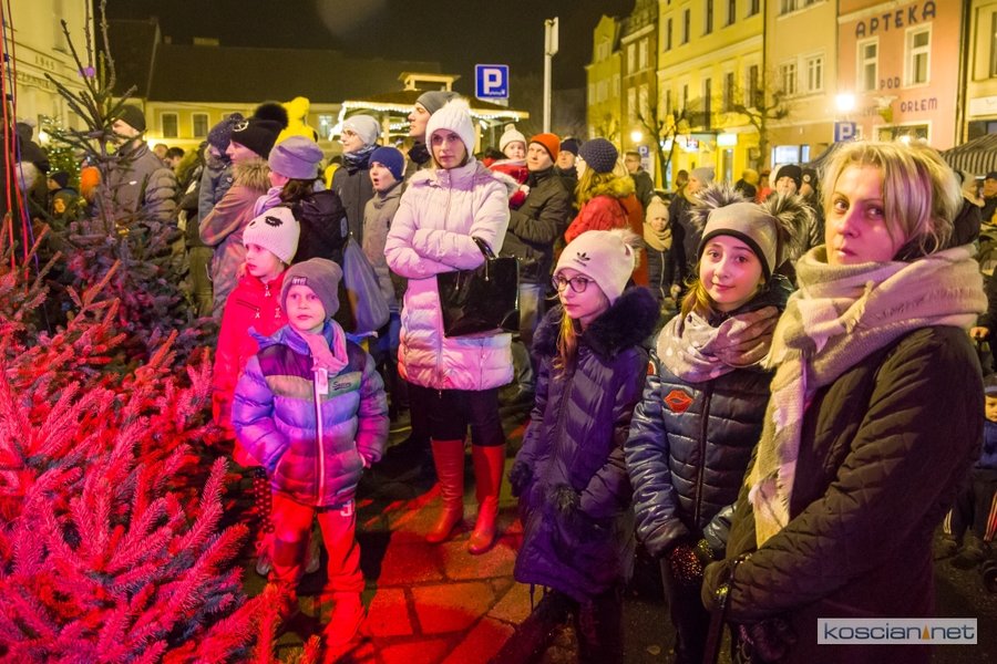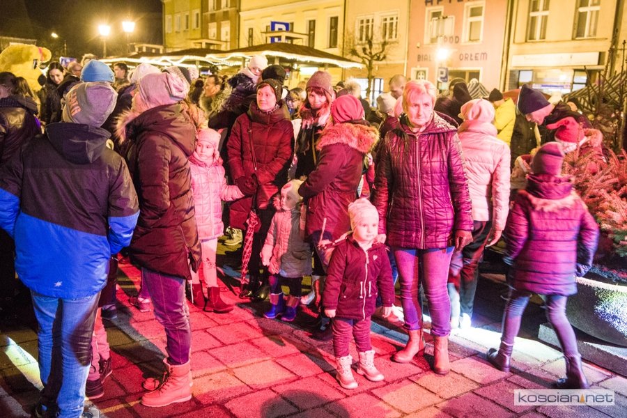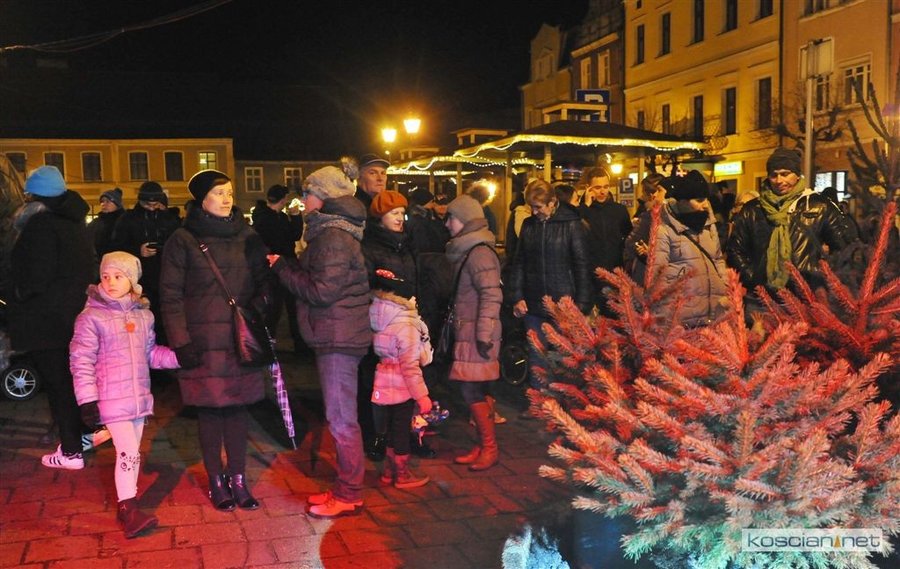 Trzydniowy kościański jarmark bożonarodzeniowy rozpoczęło uroczyste zapalenie światełek na miejskiej choince.