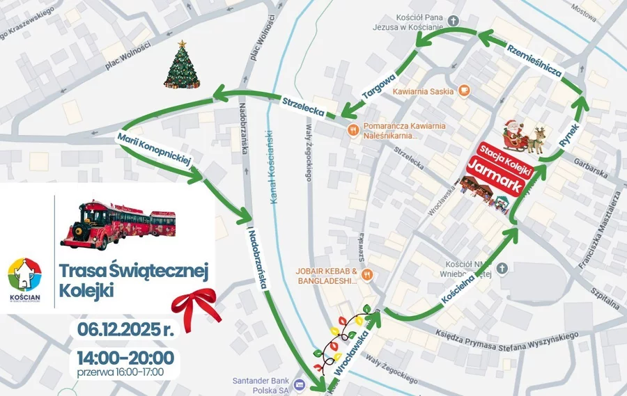 Od godz. 13:00 do 19:00 odbywać się będą animacje, a od 14:00 do 20:00 po mieście kursować będzie bezpłatna Świąteczna Kolejka (z przerwą 16:00–17:00).
