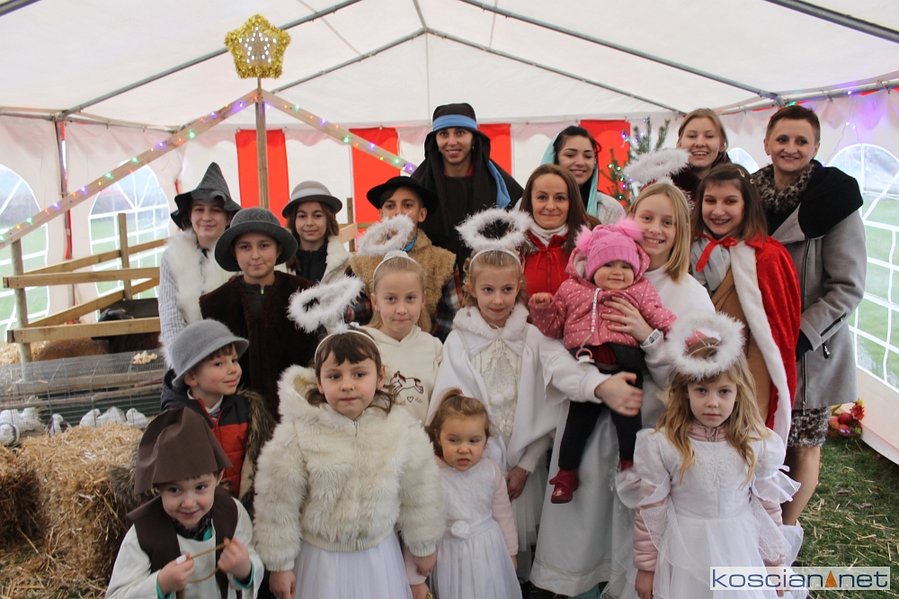 Aktorami były dzieci, młodzież i dorośli w wieku od 2 do 32 lat. Przygotowywali się oni pod czujnym okiem pani sołtys Katarzyny Szymkowiak. Jest to cykliczne wydarzenie, organizowane już od 12 lat. W tym roku było ono wyjątkowe ponieważ po raz pierwszy towarzyszyły nam żywe zwierzęta: konik, owieczki, cielaczek, gołębie i króliki. Całość scenografii dopełniły duże żywe choinki i drewniana szopka.