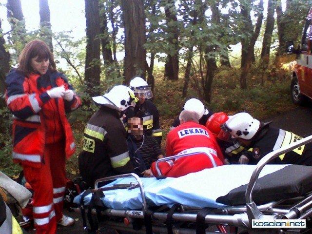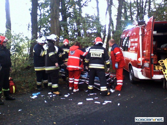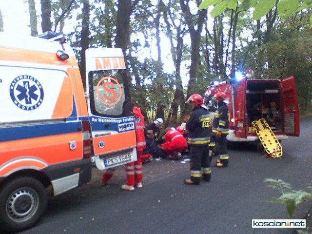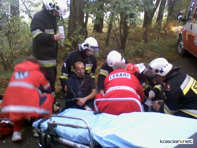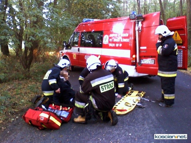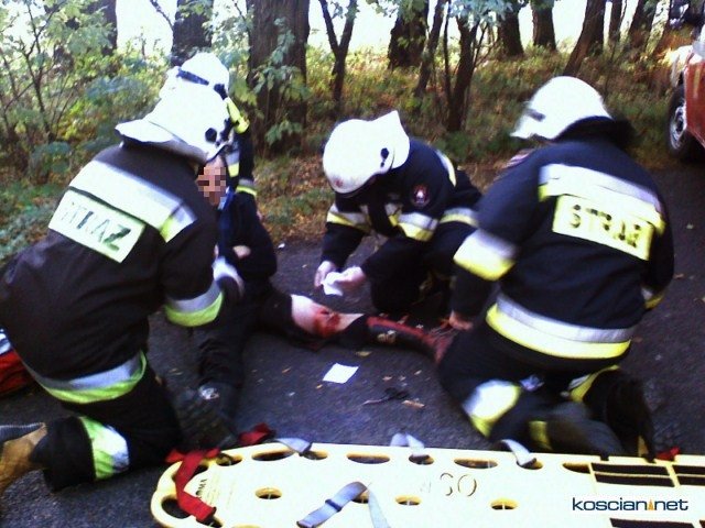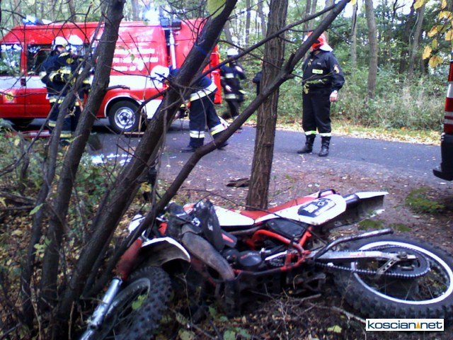 W sobotę (8 X) ok. godz. 15.50 na drodze pomiędzy Starym Gołębinem i Donatowem 40-letni mieszkaniec gminy Kościan stracił panowanie nad motocyklem i uderzył w drzewo doznając otwartego złamania nogi. Na miejscu wypadku interweniowały OSP Czempiń, PSP Kościan, pogotowie ratunkowe i policja z Kościana.