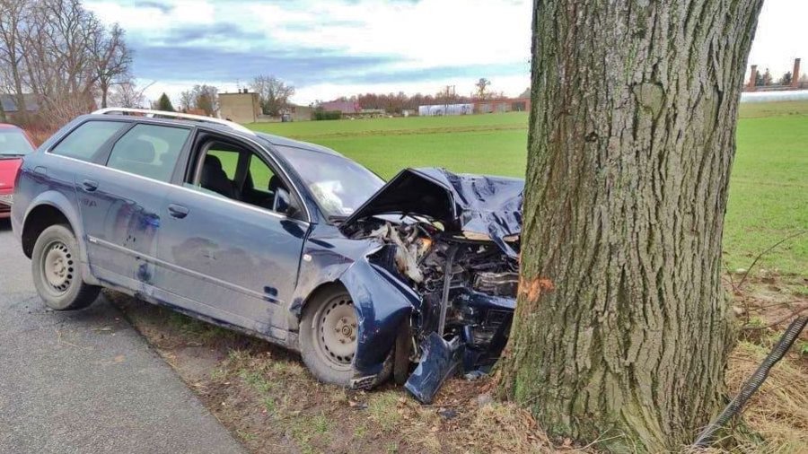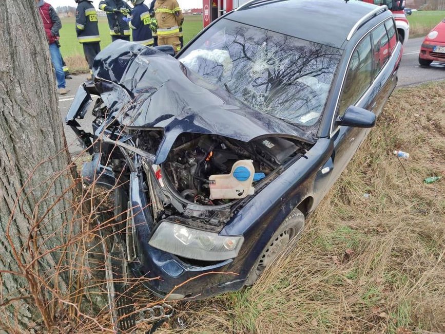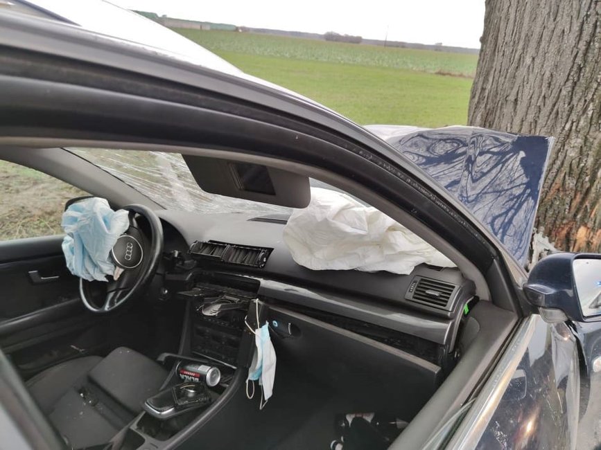 Kierujący audi stracił panowanie nad samochodem i uderzył w drzewo.