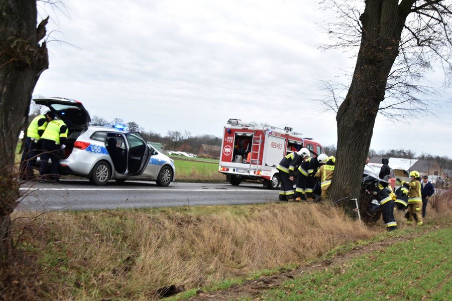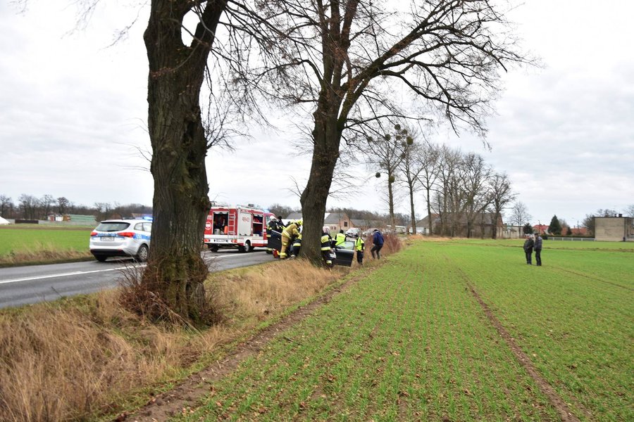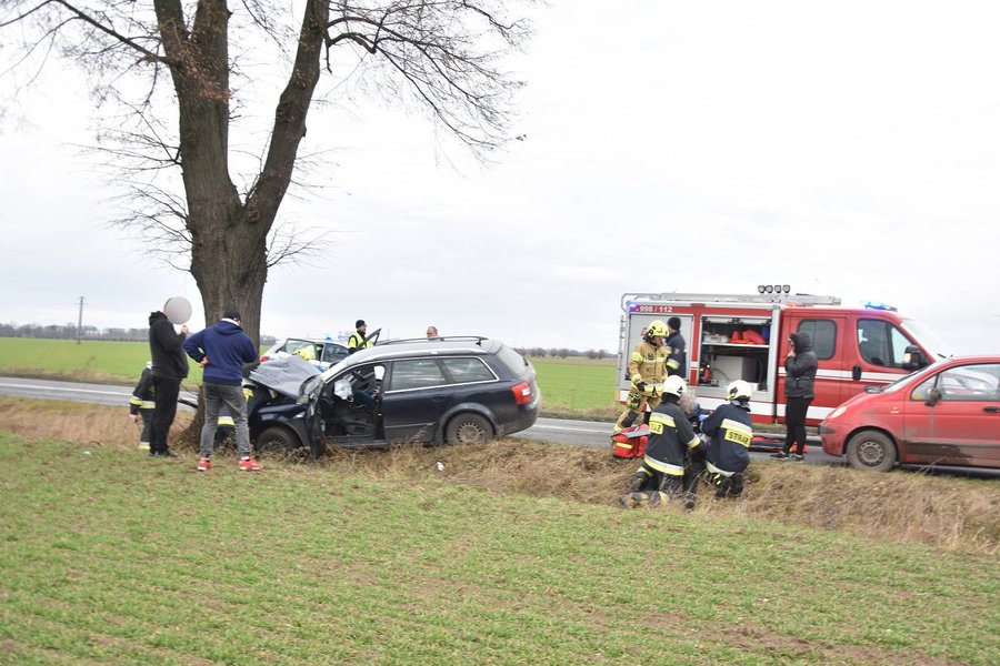 Do zdarzenia doszło w niedzielę, 2 stycznia, około godziny 13., na drodze pomiędzy Czempiniem a Borowem. Kierujący audi, 37-letni mieszkaniec gminy Kościan, nie dostosował prędkości do warunków panujących na drodze, stracił panowanie nad pojazdem i uderzył w przydrożne drzewo. Poszkodowany został kierowca i 27-letni pasażer. Kierowcy zatrzymano prawo jazdy i poinformowano go o skierowaniu do sądu wniosku o ukaranie.