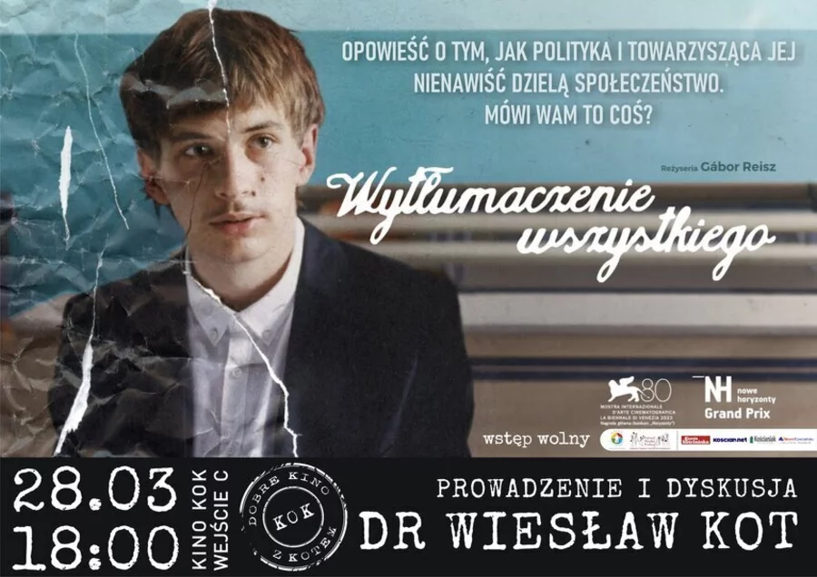 Bezpłatne seanse ambitnego kina prezentowanego w Kościańskim Ośrodku Kultury przez znanego krytyka filmowego dra Wiesława Kota, cieszą się dużą popularnością. W przyszłym tygodniu, 28 marca, w ramach cyklu wyświetlony zostanie film „Wytłumaczenie wszystkiego”.