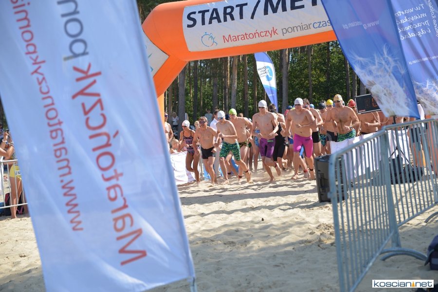 W aquathlonie wystartowało 64 dzieci. Jako pierwsi na trasę ruszyli najmłodsi do 6 lat, którym w brodzeniu w wodzie i biegu pomagali rodzice. Następnie rywalizowali pływacy w wieku 7-10 lat i 11-15 lat.