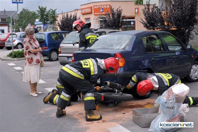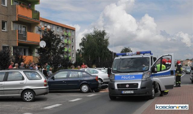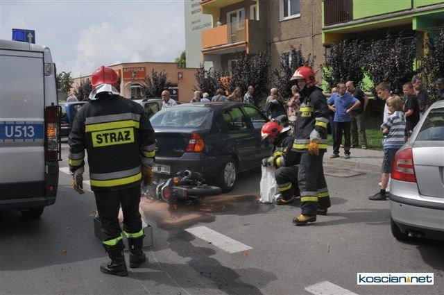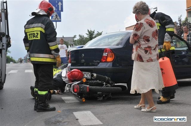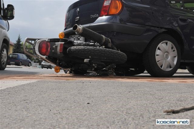 W sobotę, około godziny 14., na ul. Śmigielskiej w Kościanie 17-letni motorowerzysta uderzył w tył renaulta wycofującego się z zatoki parkingowej.