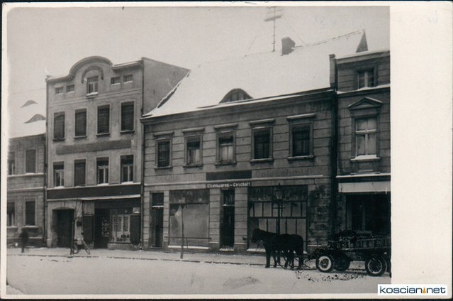 Narożnikowy dom nr 8, w którym dzisiaj znajduje się cukiernia i bar kawowy „Miniaturka”, na przełomie XIX/XX w. miał zupełnie inny kształt architektoniczny niż dzisiaj. Jego gruntowna przebudowa miała miejsce ok. 1910 r. Przebudowany został prawdopodobnie z myślą o urządzeniu w nim drukarni, świadczą o tym np. wzmocnione stropy. Właścicielem nieruchomości był stolarz Ginter, który w podwórzu posesji prowadził zakład stolarski. W 1911 r. Drukarnia Spółkowa w Kościanie wydzierżawiła dom i na parterze urządzono drukarnię, na piętrze zaś zecernię i biura dla administracji. Drukarnia działała tutaj do 1922 r., kiedy przeniosła się do swej nowej siedziby przy Al. Kościuszki (obecnie budynek po Warsztatach Zespołu Szkół Zawodowych). Prawdopodobnie zaraz po opuszczeniu budynku przez drukarnię lokal na parterze wydzierżawił Hipolit Nowakowski, który prowadził tu sklep z materiałami, bielizną i pończochami (później – Rynek 5). Przez pewien czas w budynku znajdował się prawdopodobnie lokal gastronomiczny, sklep obuwniczy, sklep artykułów papierniczych i piśmienniczych, a także sklep z rowerami. W 1936 r. znajdował się tu już sklep „towarów krótkich” (pasmanteria) prowadzony przez Annę Śmiłowską, która wcześniej prowadziła sklep tej samej branży w budynku przy Rynku nr 11. Jej mąż był krawcem i w oficynie prowadził zakład krawiecki (już w 1924 r.). (cdn)