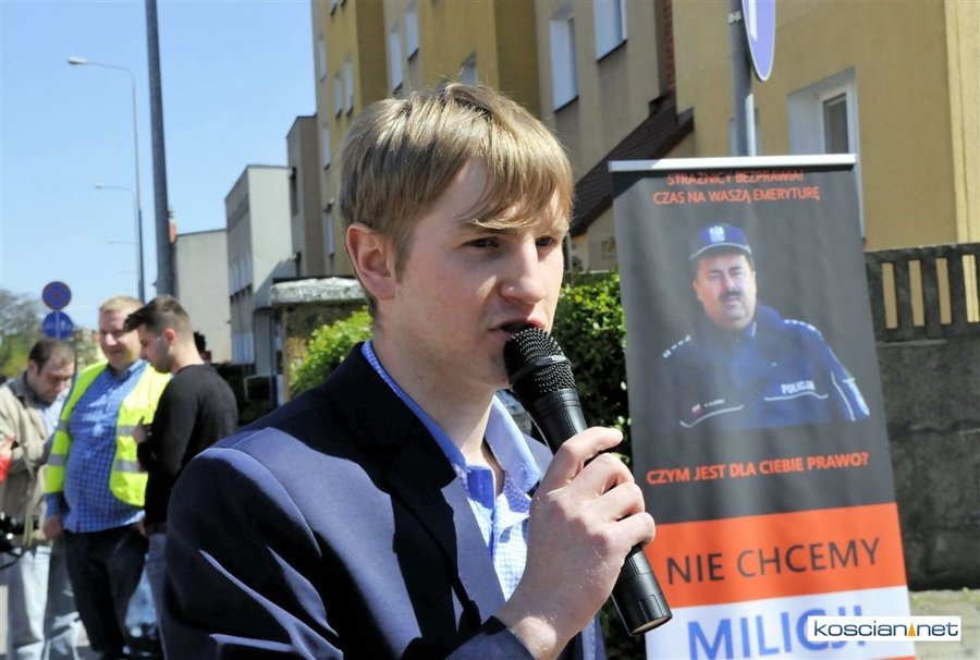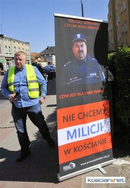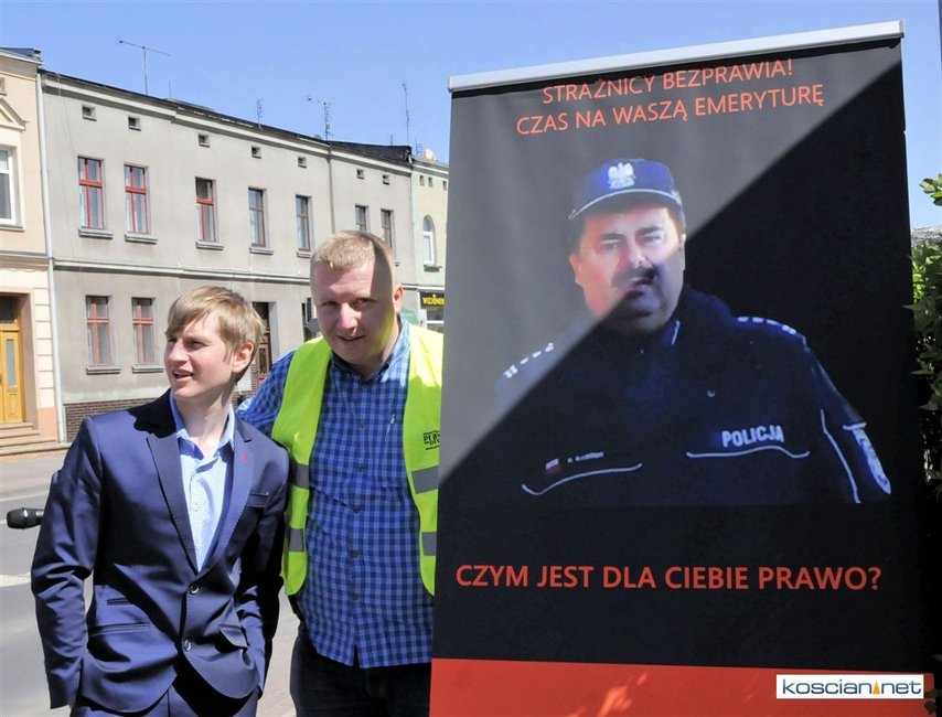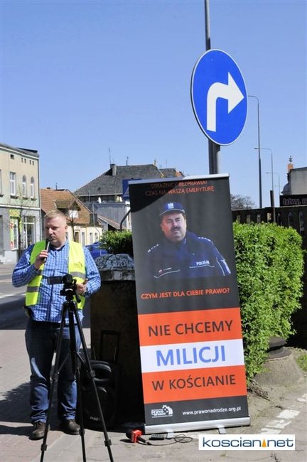 Pikieta odbyła się po kolejnej rozprawie dotyczącej wydarzenia z sierpnia 2014, kiedy to Patryk Tomaszewski wjechał na teren Komendy Powiatowej Policji w Kościanie i od stojącego przez budynkiem funkcjonariusza otrzymał 7 punktów karnych i dwa mandaty na łączną kwotę 200 złotych. Jeden za jazdę bez zapiętych pasów bezpieczeństwa, drugi za zignorowanie zakazu wjazdu.