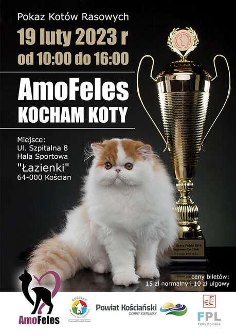 W niedzielę, 19 lutego, poznański Klub Kotów Rasowych AmoFeles we współpracy z samorządami Kościana i Powiatu Kościańskiego zorganizował w hali sportowej na Łazienkach pokaz kotów.