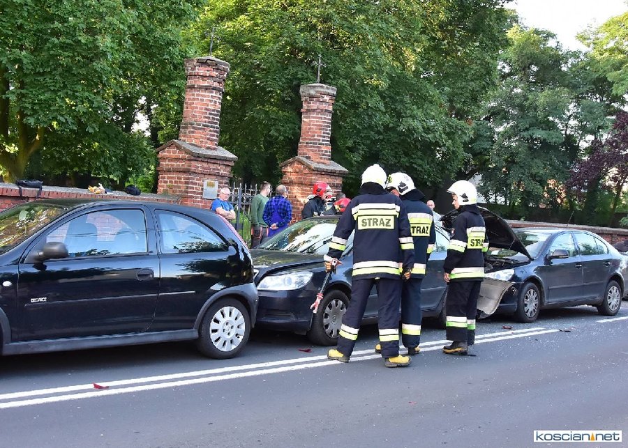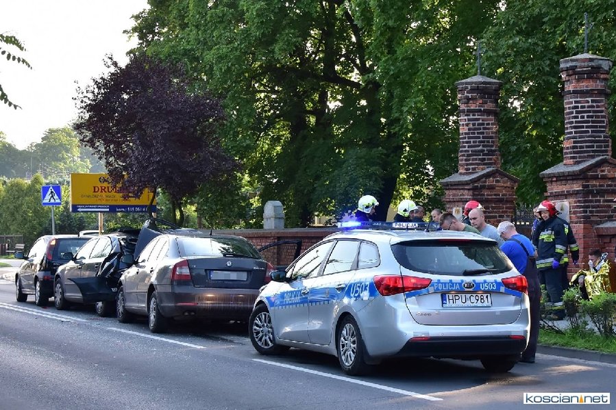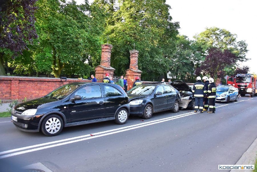 Do zdarzenia doszło około godziny 7.30 na ulicy Poznańskie Przedmieście. W kolizji uczestniczyły dwie skody i opel. Poszkodowanego kierowcę skody przewieziono na badania do kościańskiego szpitala. Na miejscu interweniowali strażacy z PSP Kościan i OSP Czempiń. Okoliczności zdarzenia wyjaśnia policja.
