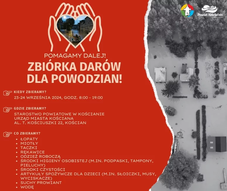 Urząd Miejski Kościana i Starostwo Powiatowe organizują kolejną zbiórkę darów dla powodzian.