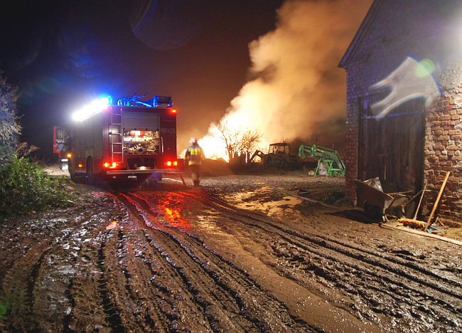 Ogień zauważono około godziny 22. Pożar gaszono do prawie do trzeciej w nocy, pogorzeliska pilnowano do rana. Spłonęło 240 balotów słomy. Straty wstępnie oszacowano na 7 tysięcy złotych.Ponieważ przez cały dzień padał deszcz strażacy podejrzewają, że pożar nie był dziełem przypadku. Ktoś podpalił stóg celowo.
