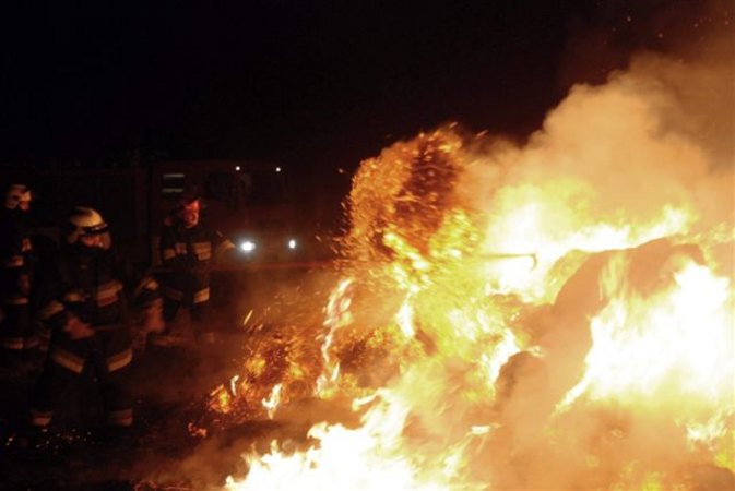 Wczoraj wieczorem (8 grudnia) stanął w ogniu kolejny stóg we wsi Januszewo (gmina Kościan). Mieszkańcy nie mają wątpliwości, że to podpalenie. Tym razem palił się stóg o długości blisko 20 metrów i 3 metrów wysokości. Spłonęło sto balotów słomy. Strażacy z Kościana, Racotu i Grażyny starali się przede wszystkim uniknąć przeniesienia się ognia na stojący w pobliżu drugi stóg. To już trzeci w tym roku pożar wzniecony przez człowieka. Pierwszy miał miejsce 19 września. Spaliła się wówczas wiata i zgromadzone pod nią 300 balotów siana i 700 balotów słomy. 28 października odnotowano kolejny przypadek podpalenia. Piroman podłożył ogień pod stóg słomy pszennej. Spłonęło ponad 200 balotów słomy. (s)