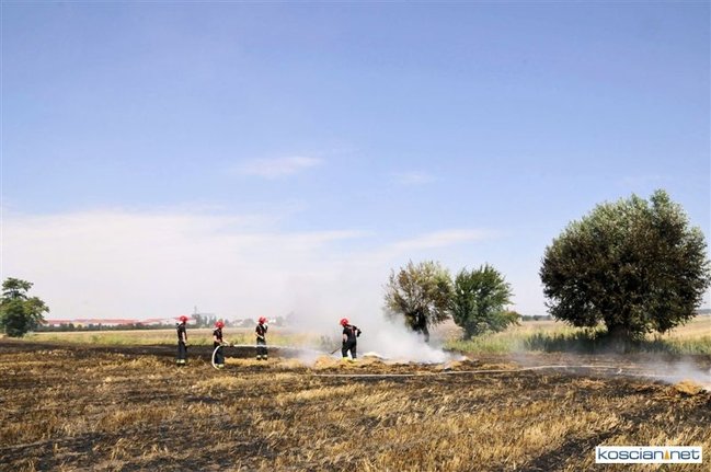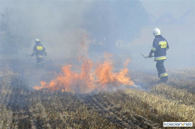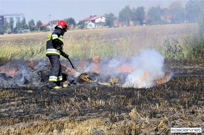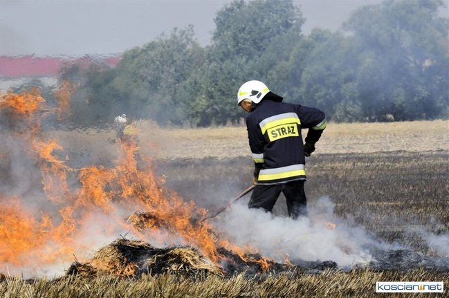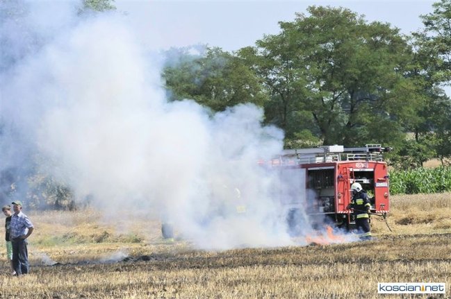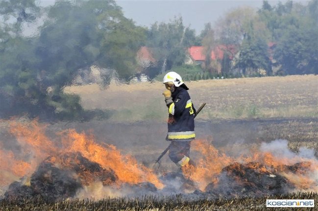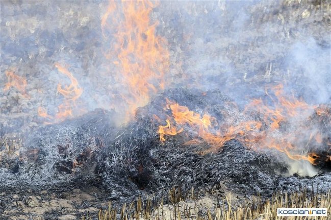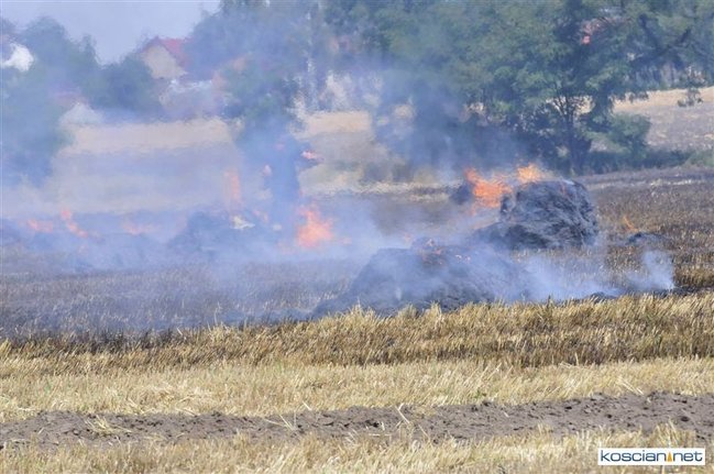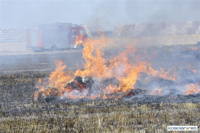Na polu w pobliżu Spytkówek (gmina Kościan) spłonęły baloty słomy.