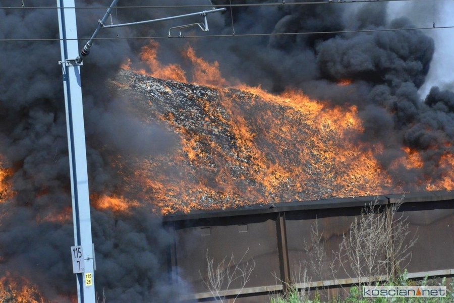 Do pożaru doszło po godzinie 9. w czwartek, 3 czerwca. Paliły się dwie hałdy rozdrobnionych odpadów o powierzchni 300 m kw. i wysokości do 8 metrów. W akcji gaśniczej wzieło udział 28 zastępów straży pożarnej.