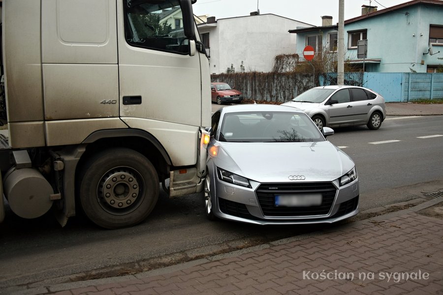 Do kolizji doszło przed godziną 12., na ul. Gostyńskiej w Kościanie. Włączające się do ruchu audi nie udzieliło pierwszeństwa przejazdu ciężarowemu volvo. Przez ponad godzinę ruch odbywał się wahadłowo.