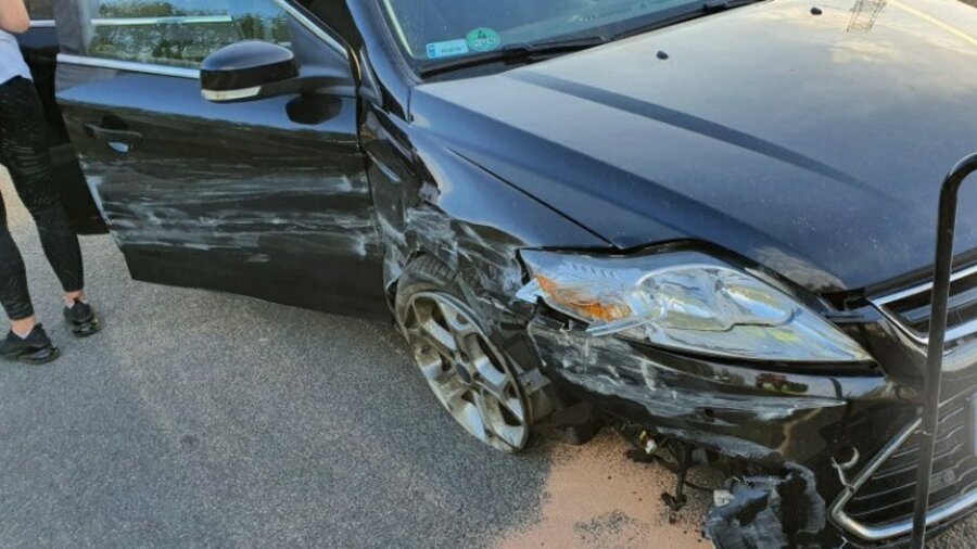 Ford mondeo uderzył w bariery energochłonne.