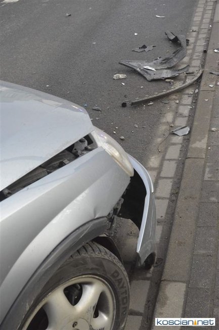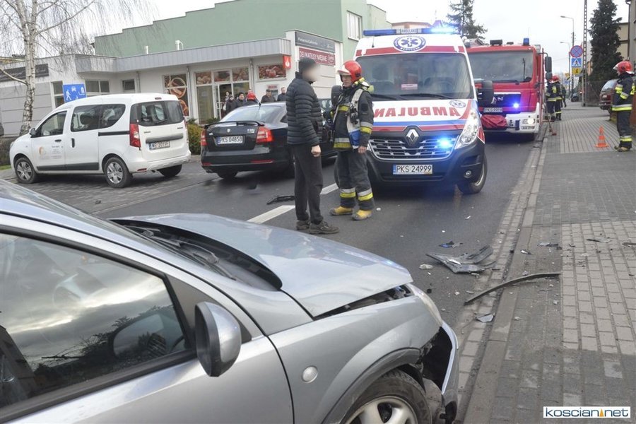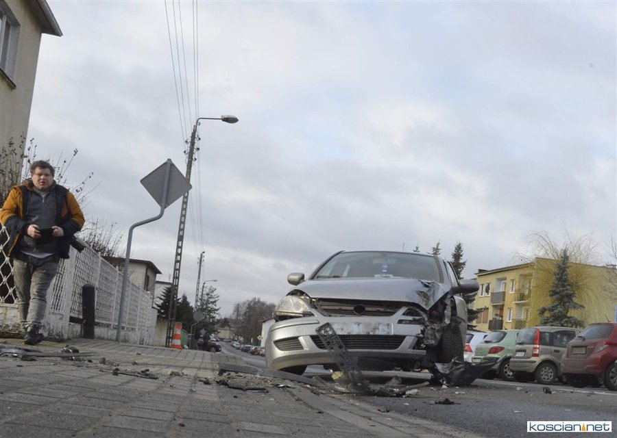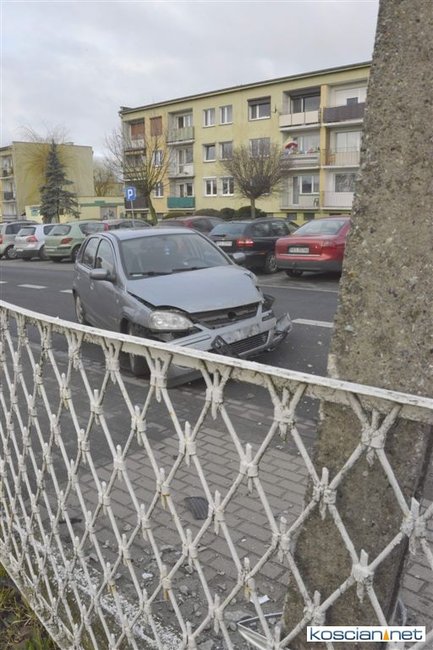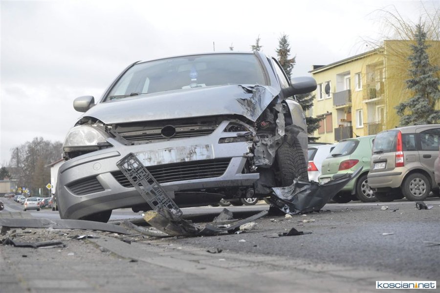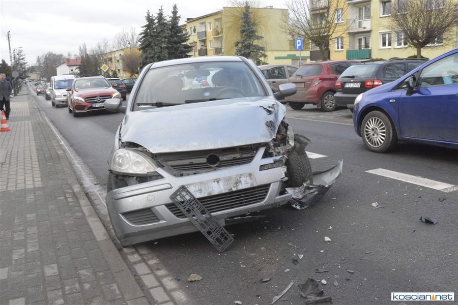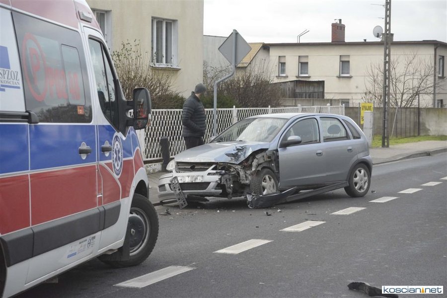 Do zdarzenia doszło w poniedziałek, 24 lutego, około godziny 8.00 na ulicy Szkolnej w Kościanie. Jak wynika ze wstępnych ustaleń, włączający się do ruchu ford galaxy nie ustąpił pierwszeństwa oplowi corsa. Po zderzeniu opel przemieścił się i uderzył w uliczną lampę i płot posesji.