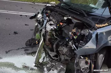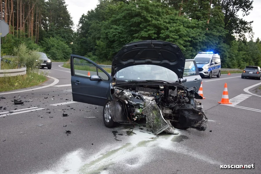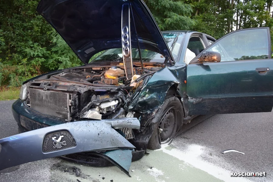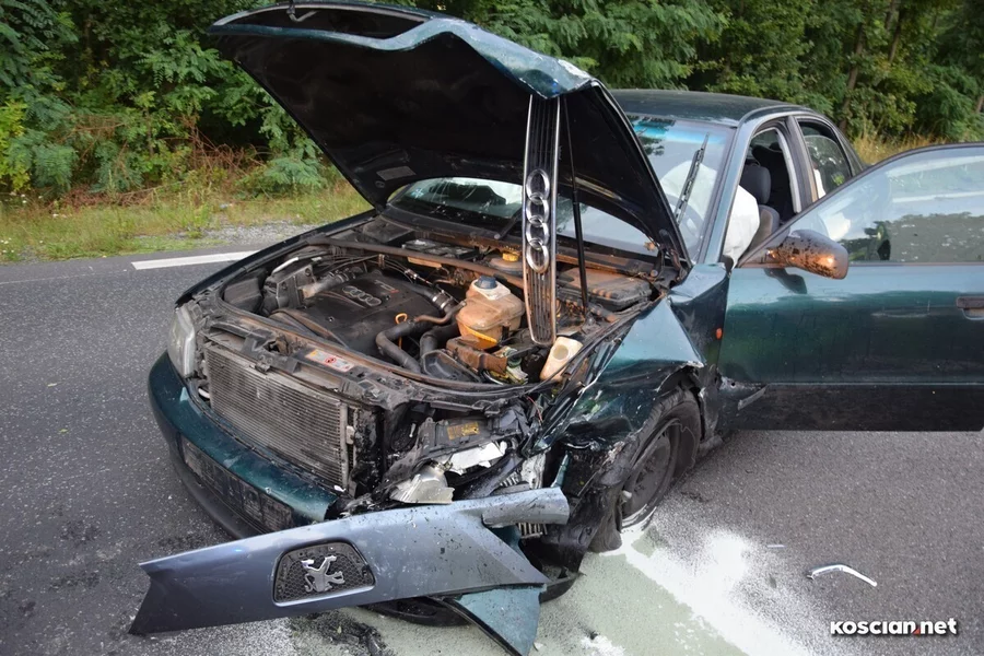 Do kolizji przy granicy powiatów kościańskiego i leszczyńskiego doszło w niedzielny wieczór. Jak wynika ze wstępnych ustaleń, sprawcą był kierowca peugeota 307, który nie ustąpił pierwszeństwa audi a4. Oba pojazdy zostały poważnie uszkodzone, ale kierowcy wyszli ze zdarzenia bez poważniejszych obrażeń.