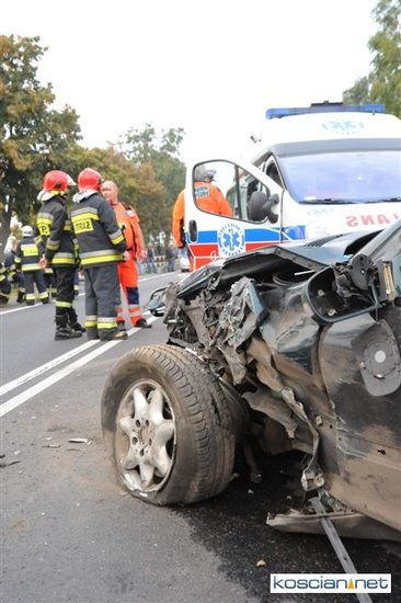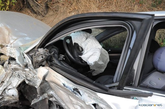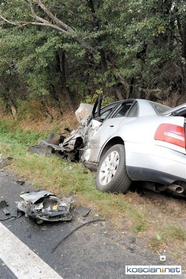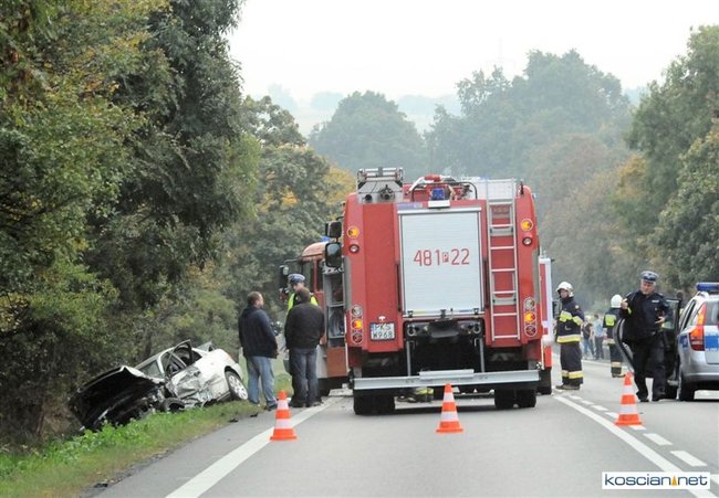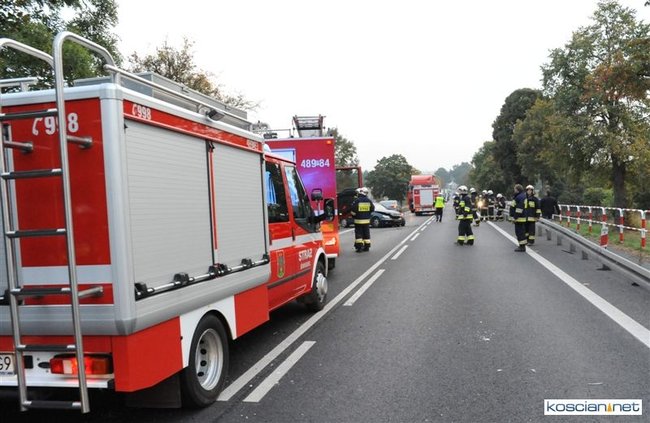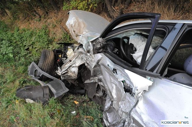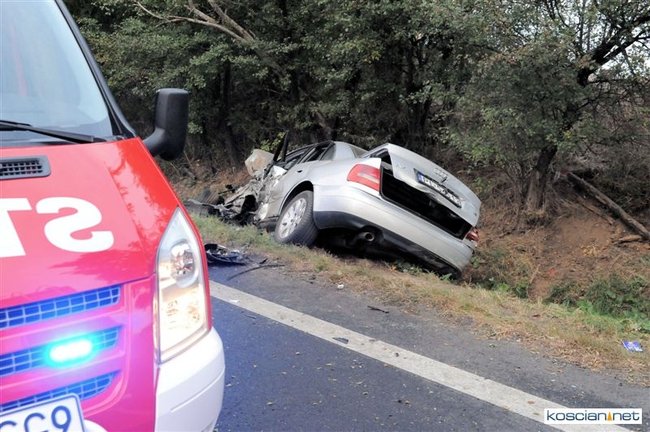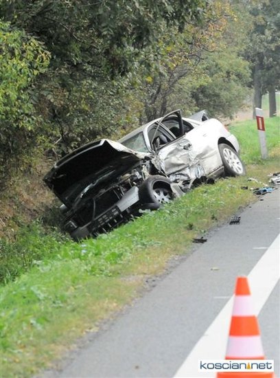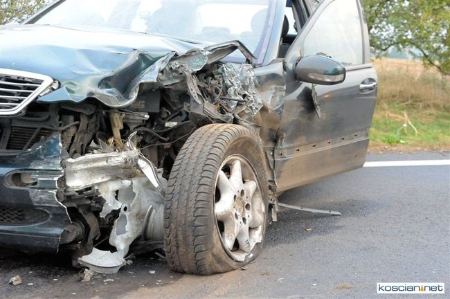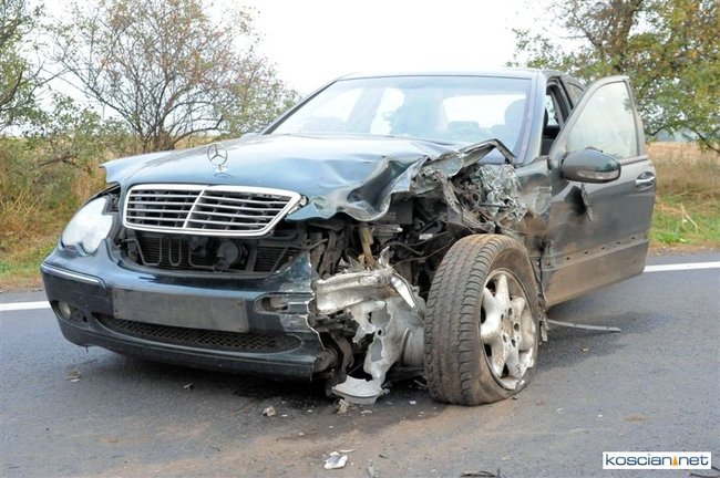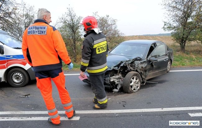 Po godzinie 17. mercedes prowadzony przez 57-letniego mieszkańca Rybnika zjechał na przeciwny pas drogi i zderzył się z jadącym w przeciwnym kierunku audi prowadzonym przez 35-letniego mieszkańca Leszna. Uszkodzona została także alfa romeo kierowana przez 44–letniego mieszkańca Wrocławia, który jechał za mercedesem. Cztery osoby przewieziono do szpitala. Na szczęście nikt poważnie nie ucierpiał. Sprawcę kolizji ukarano mandatem.
